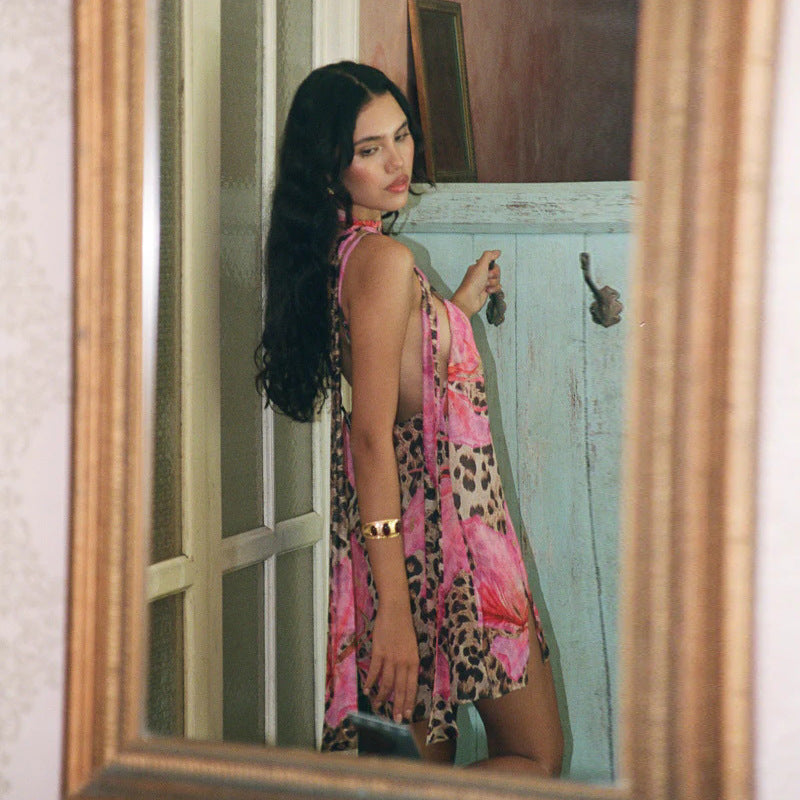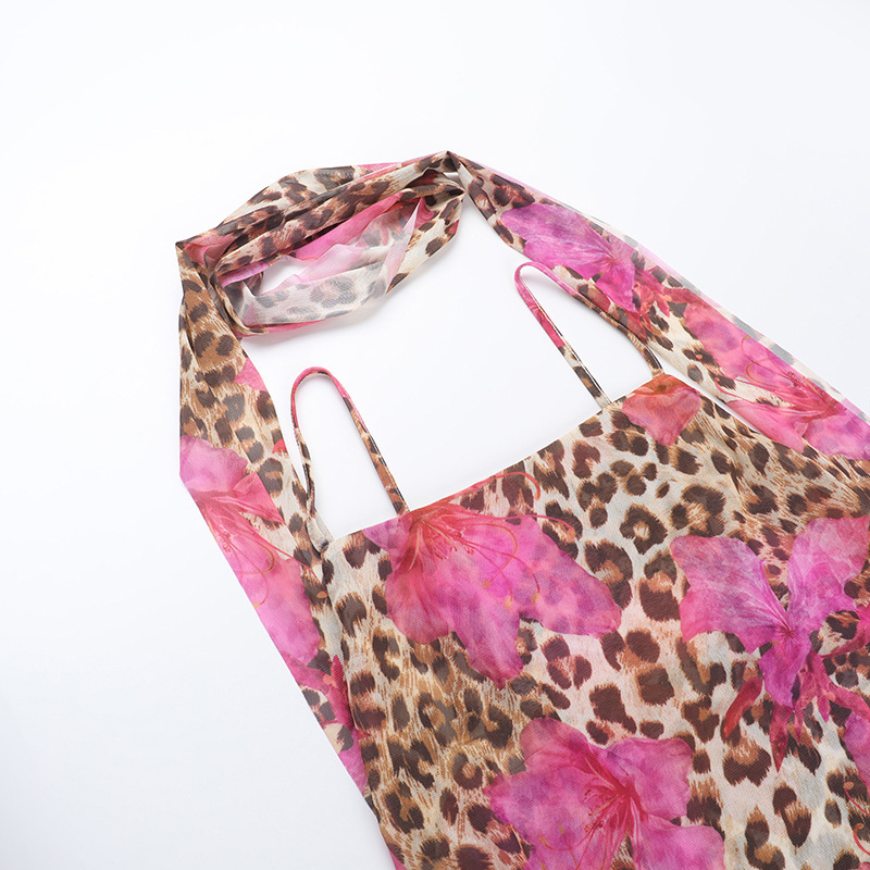 Vestido de verano con estampado de leopardo y tirantes ajustados para mujer