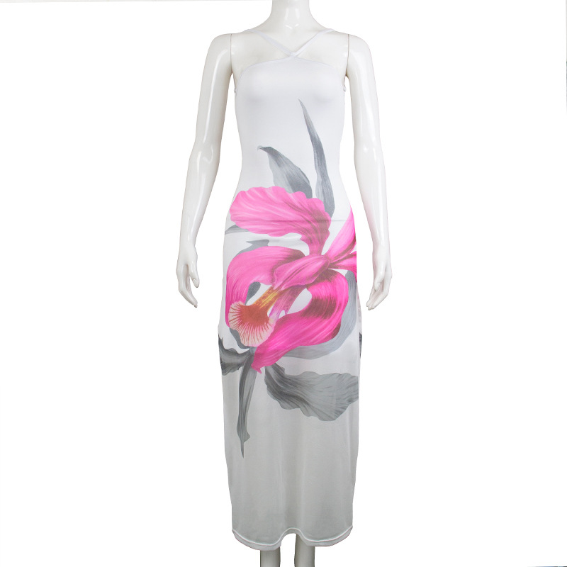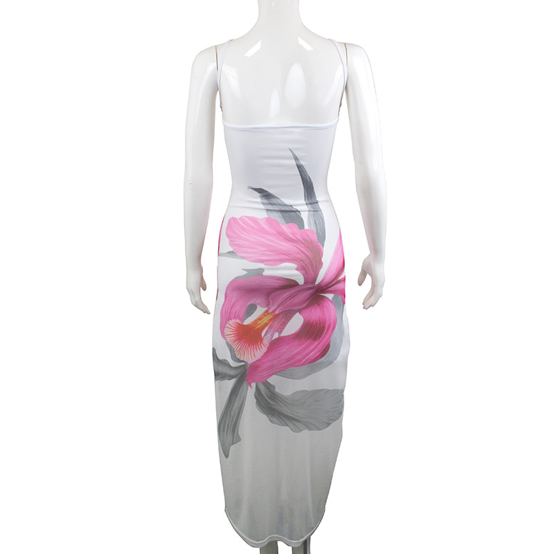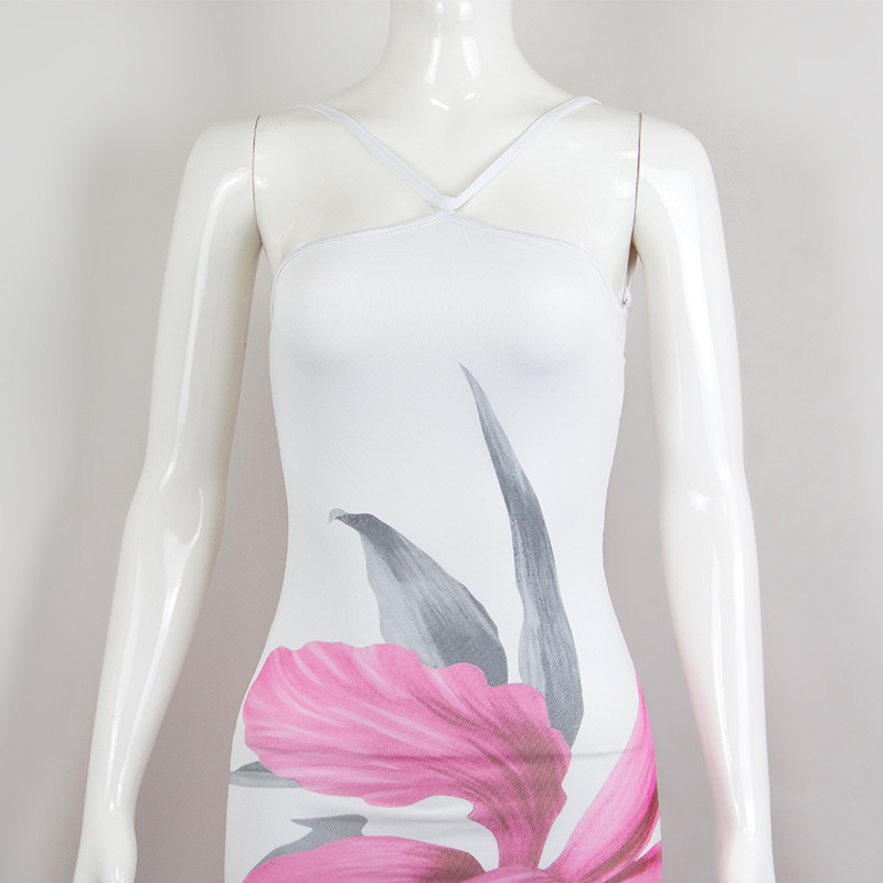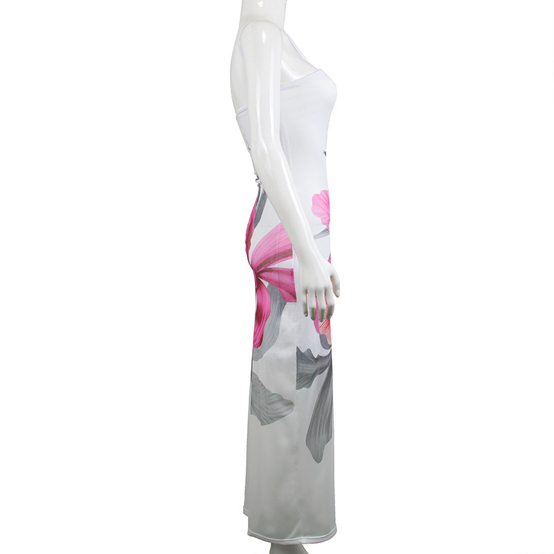 Vestido largo de verano para mujer, ajustado, sin espalda y con forro de cinta estampada