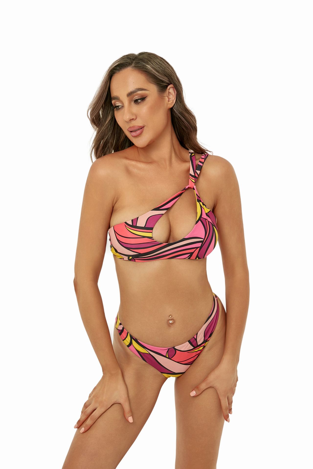 Traje de baño de un hombro para mujer, estampado, dividido, bikini sexy con cuello halter.
