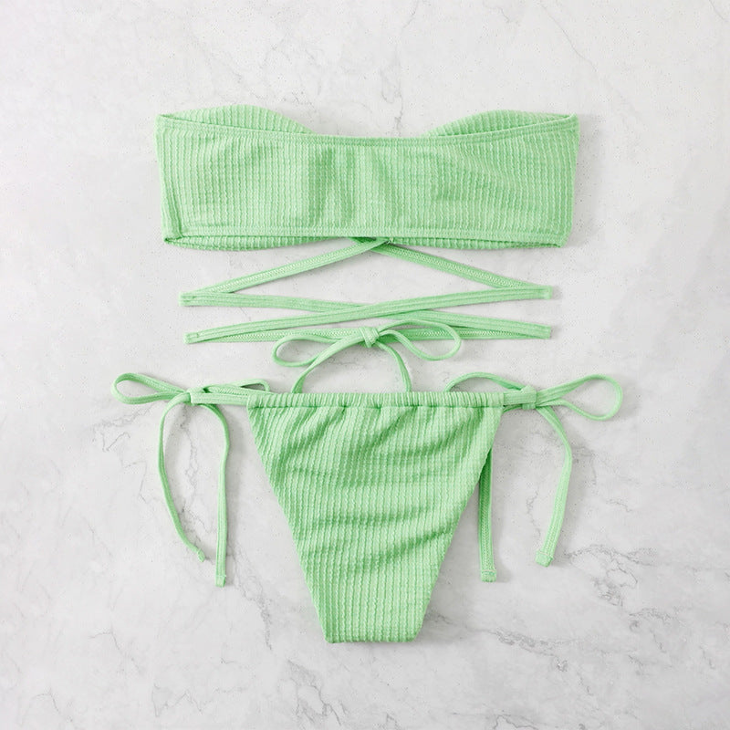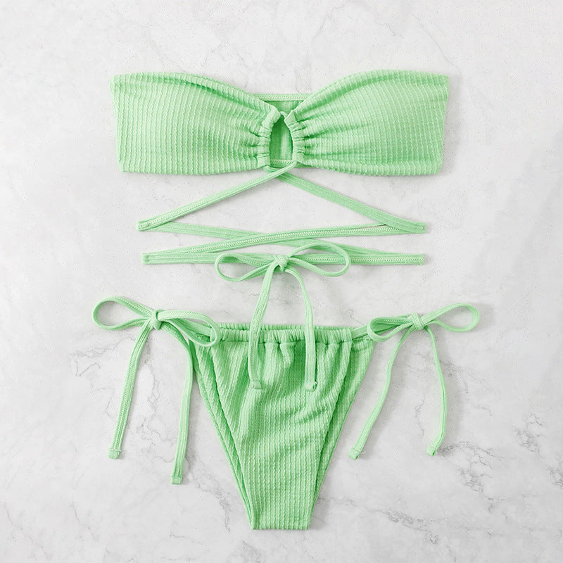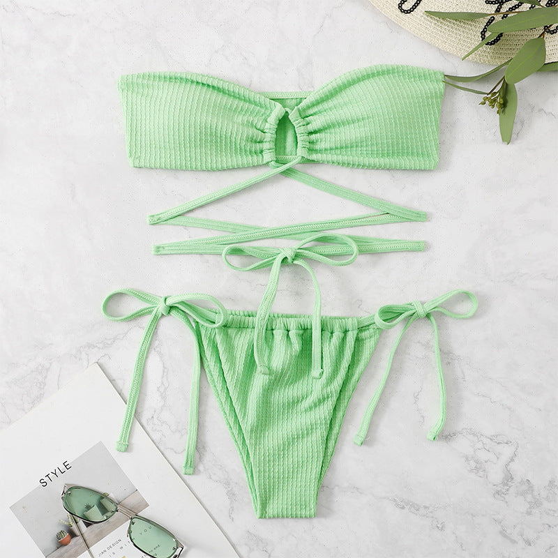 Traje de baño de color sólido sin espalda traje de baño sexy bikini de cintura alta ahuecado