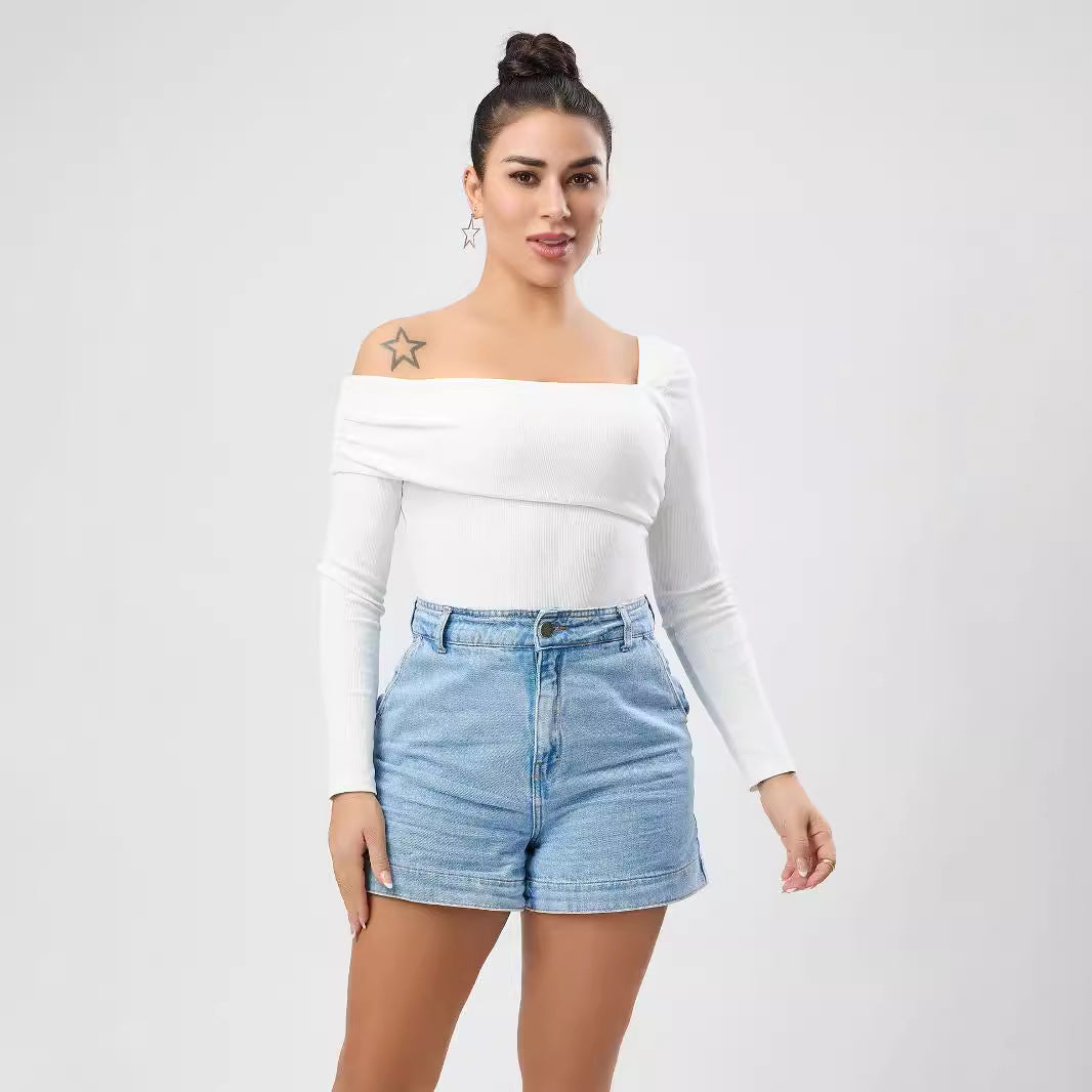 Mono blanco de exterior para mujer, diseño de un solo hombro, top para mujer, otoño