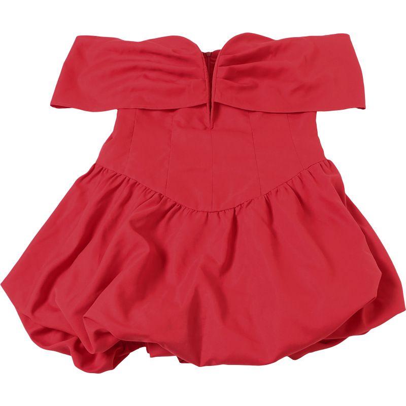 Vestido corto elegante de invierno para mujer, con escote pronunciado, de color liso, de alta calidad y abullonado.