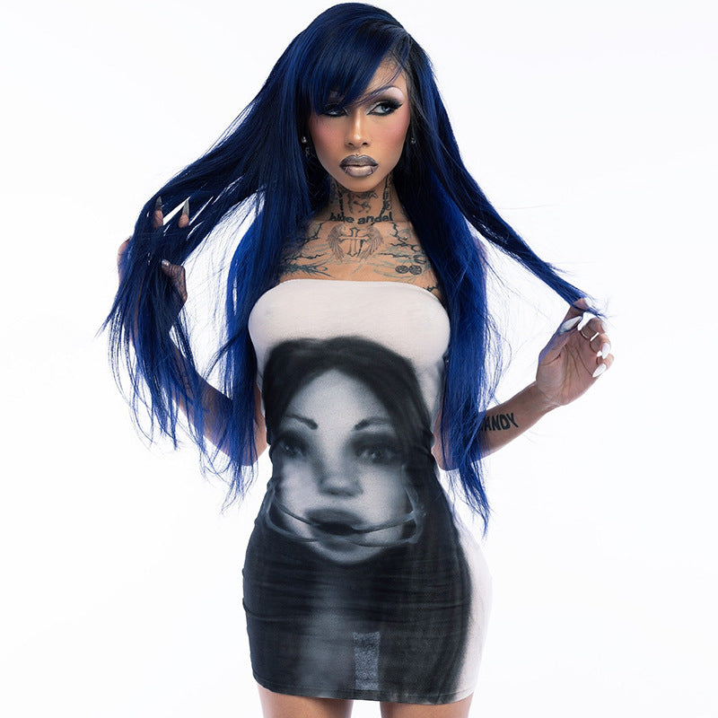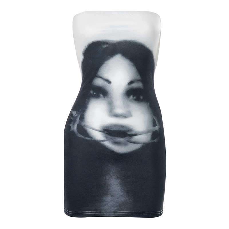 Vestido tubo ajustado sin mangas con estampado de cara oscura de verano para mujer
