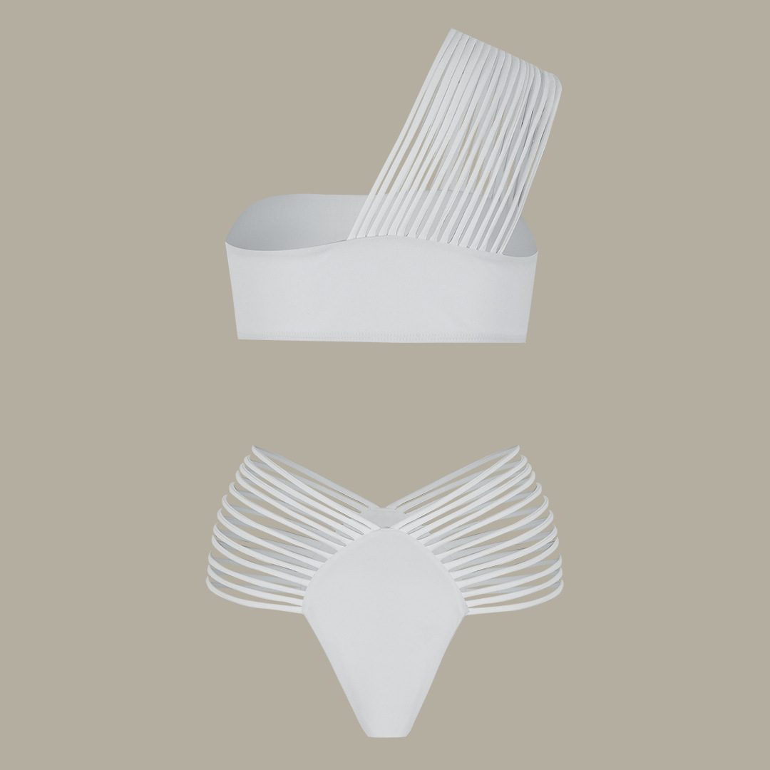 Traje de baño de una pieza con cuello halter y abertura en color liso para mujer