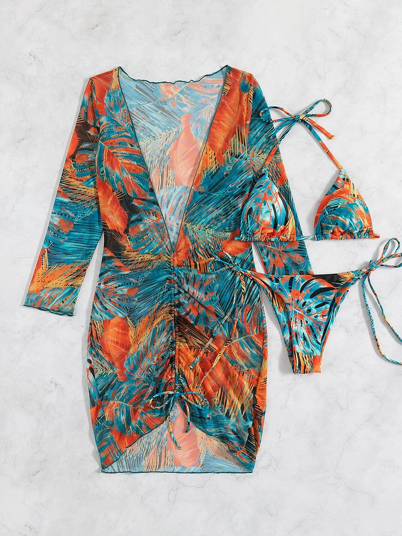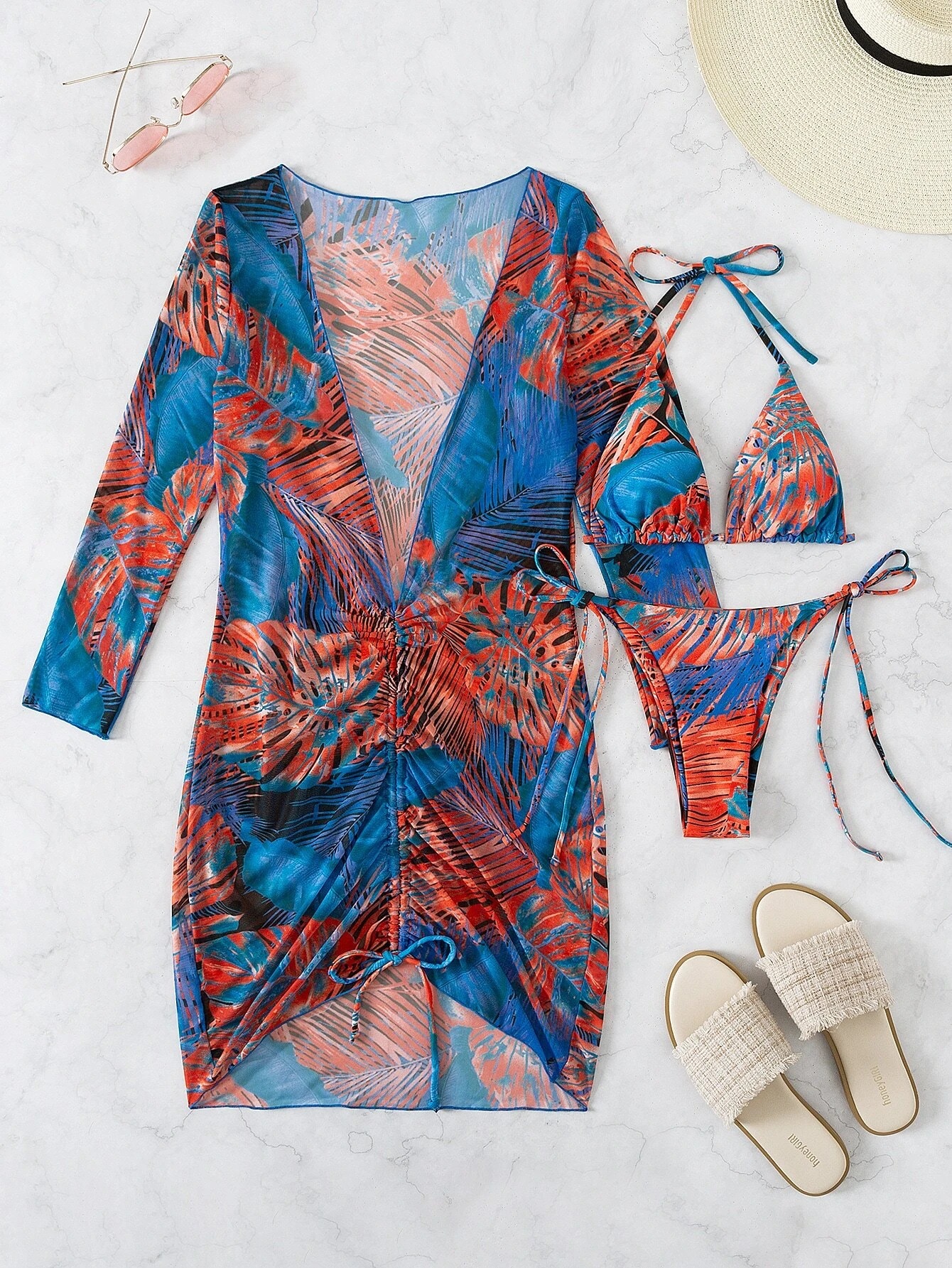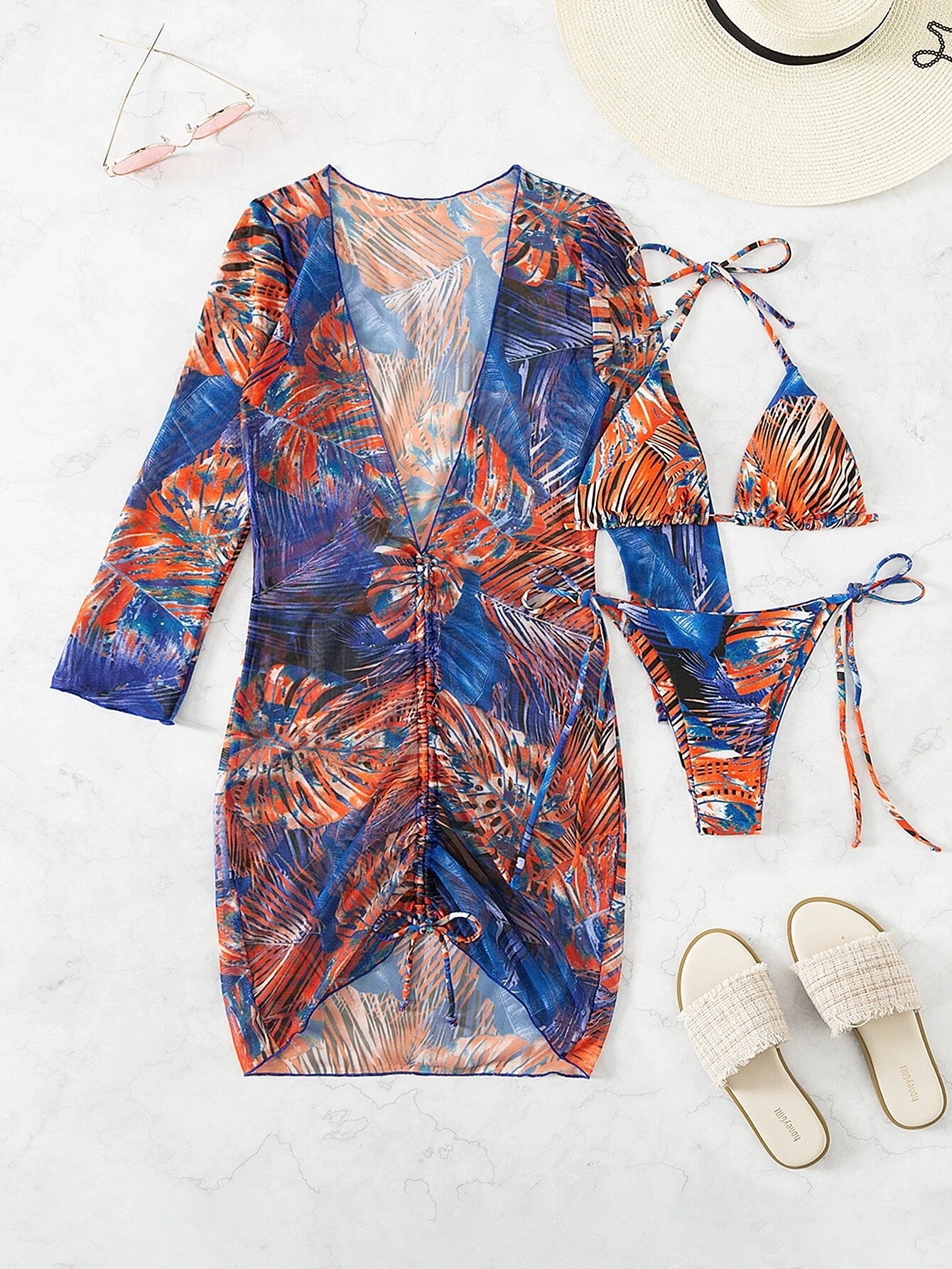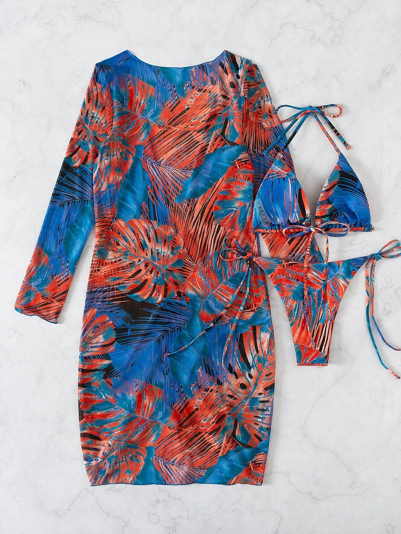 Traje de mujer con blusa de manga larga de tres piezas con cordón y abertura en tres puntos