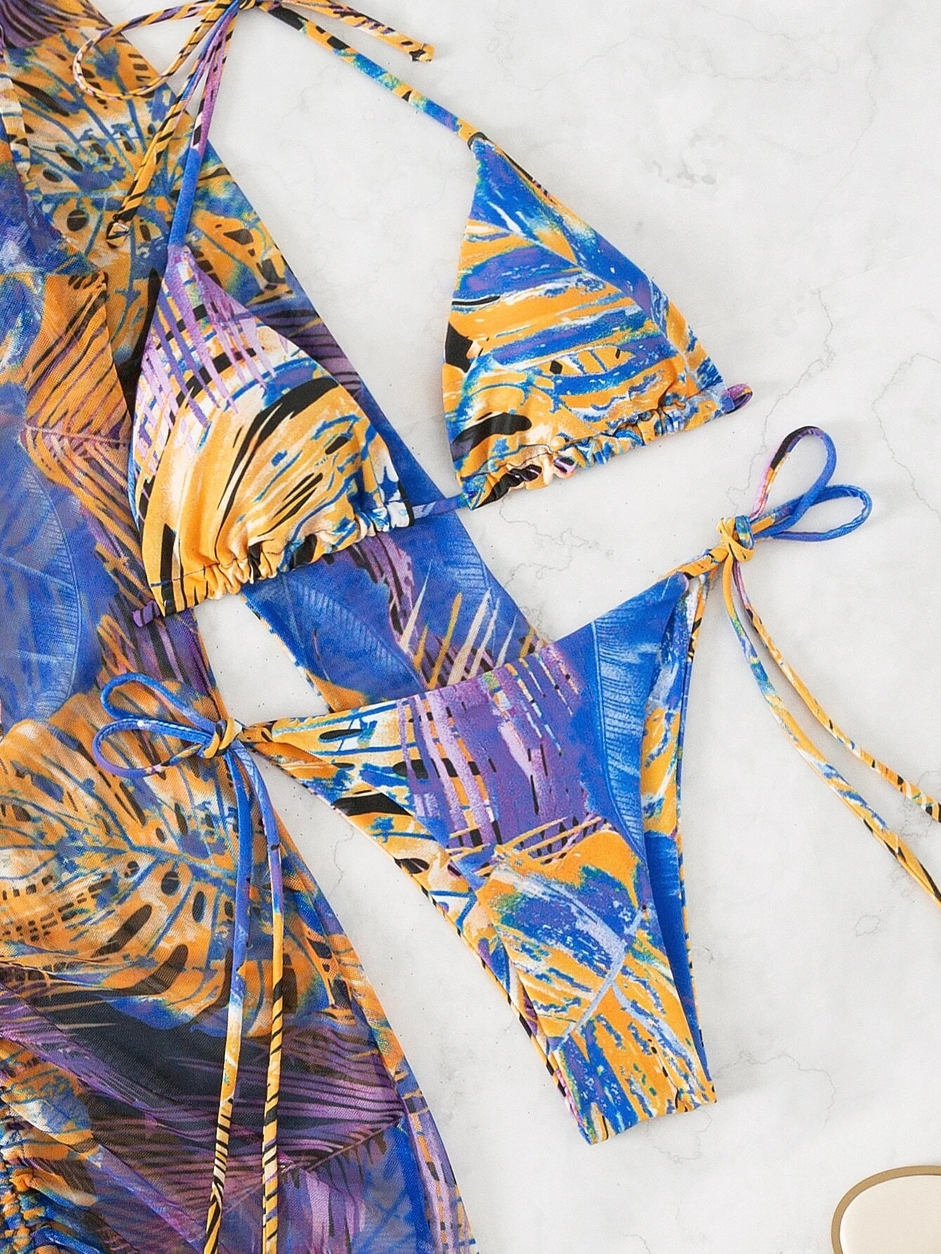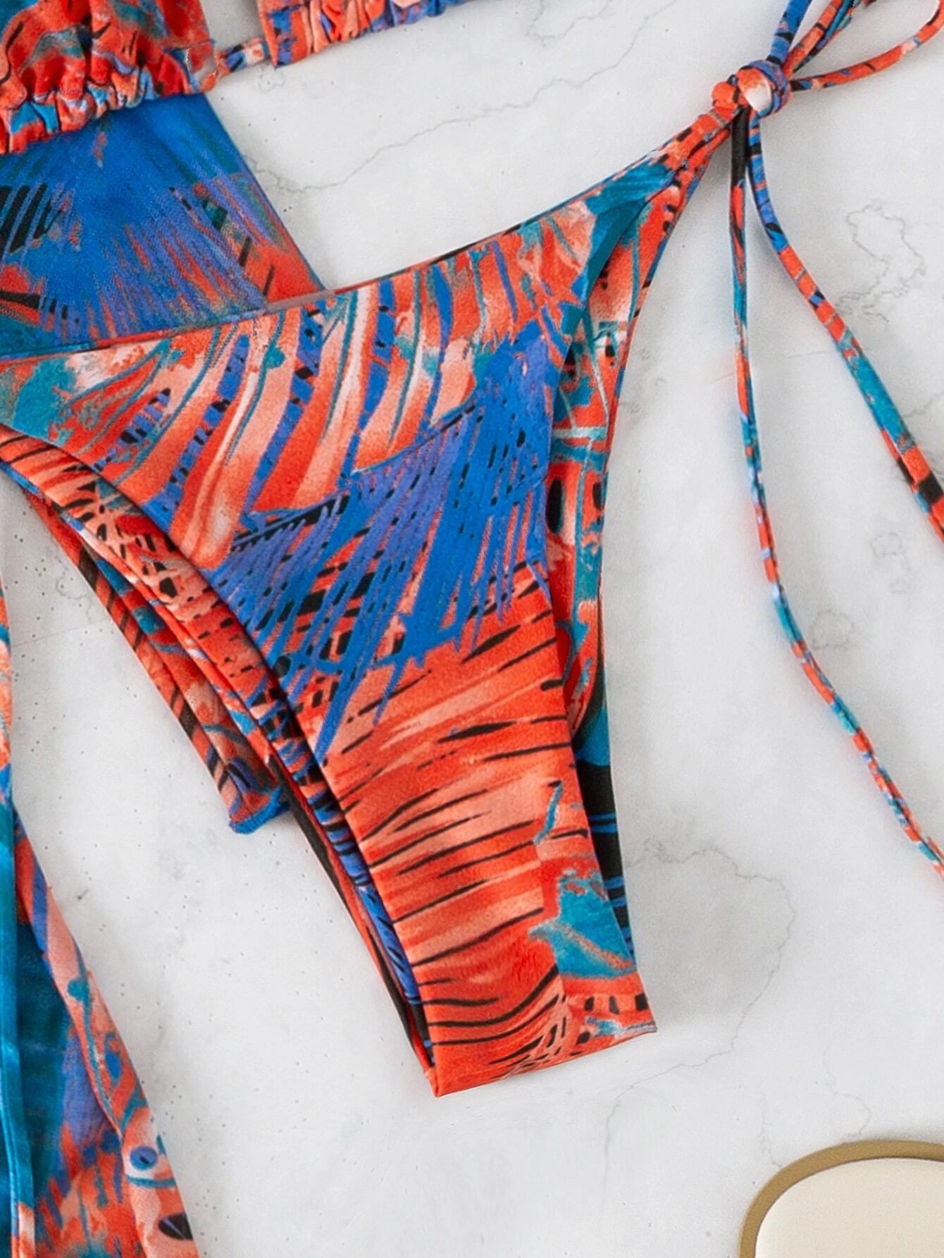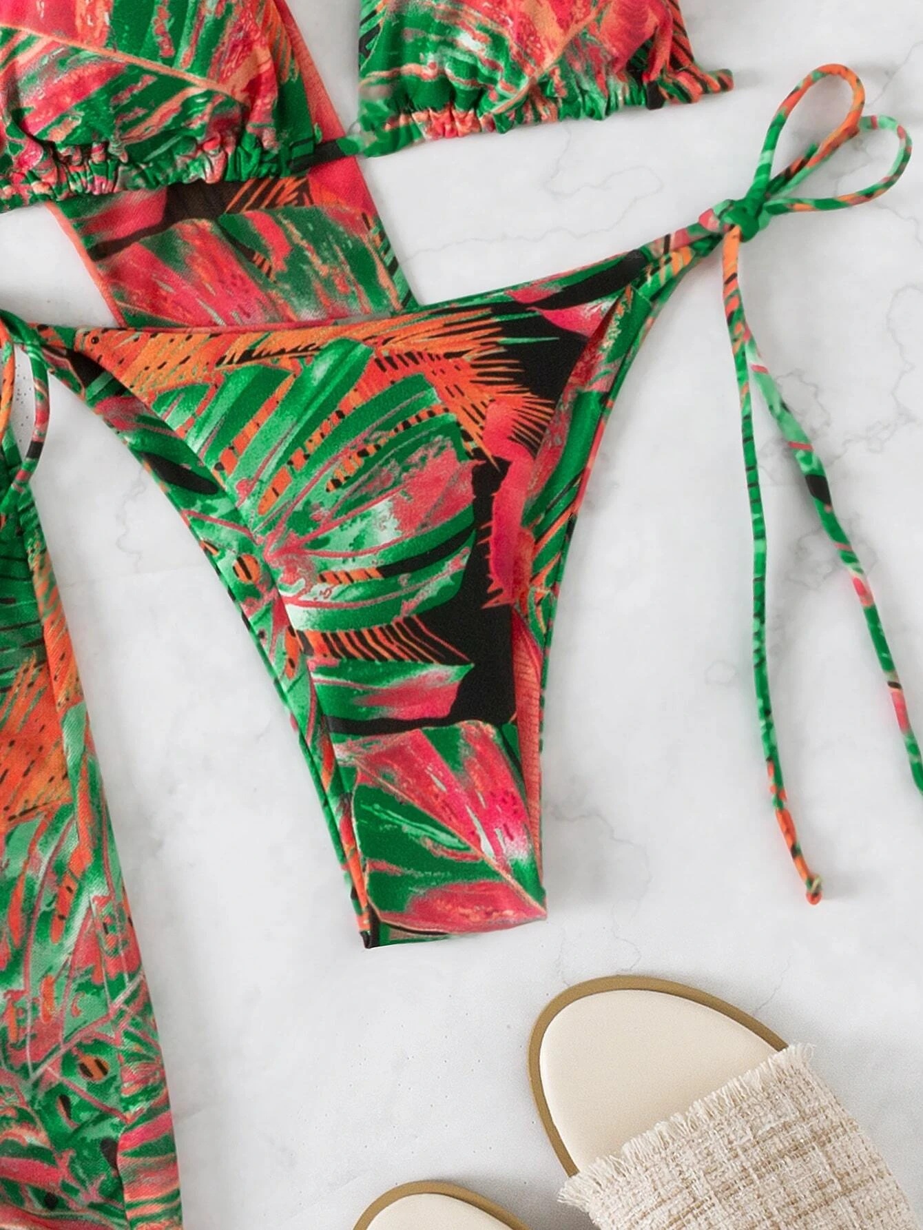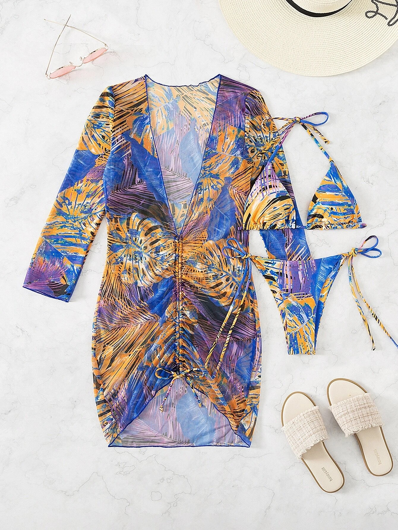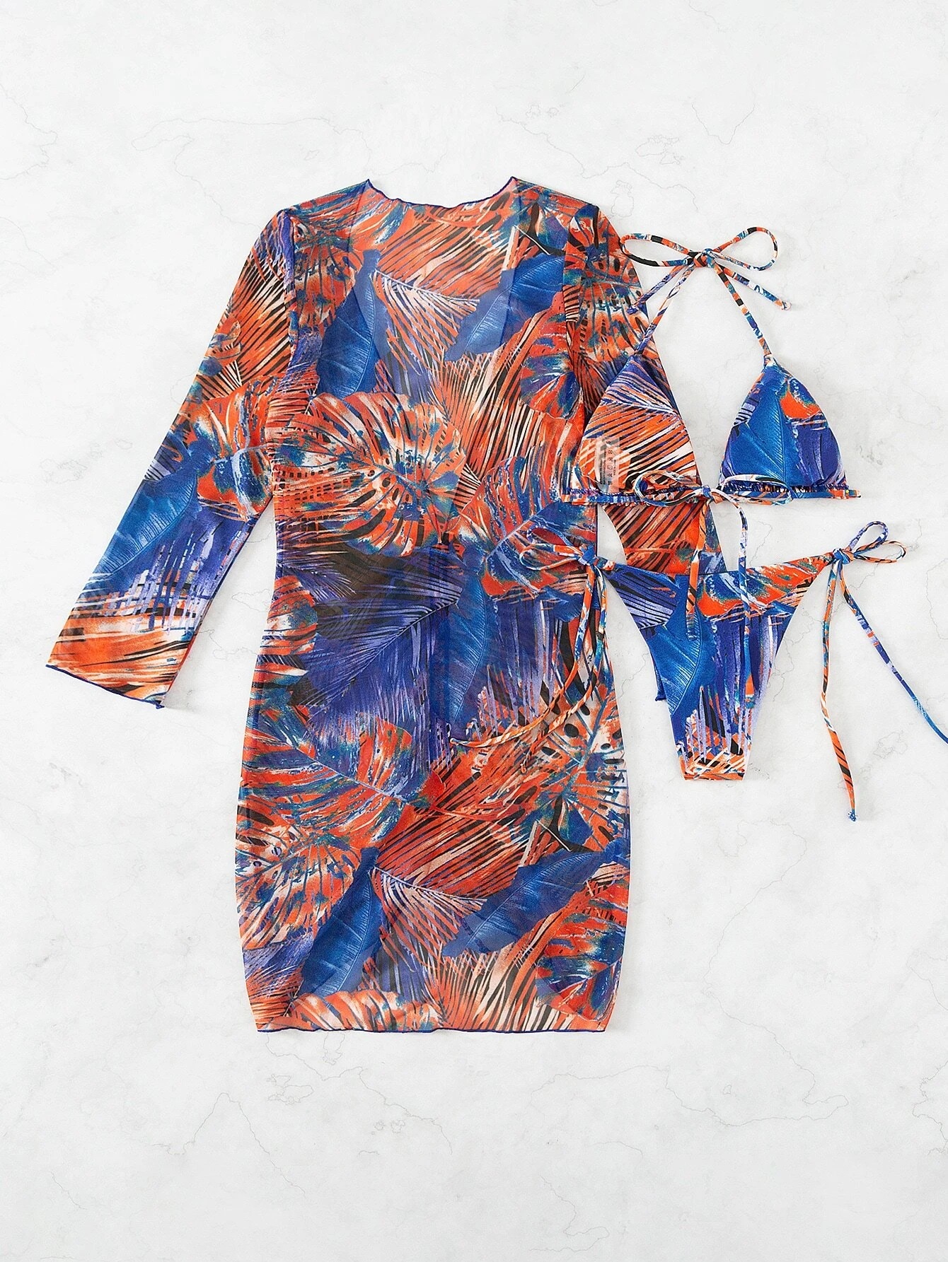 Traje de mujer con blusa de manga larga de tres piezas con cordón y abertura en tres puntos