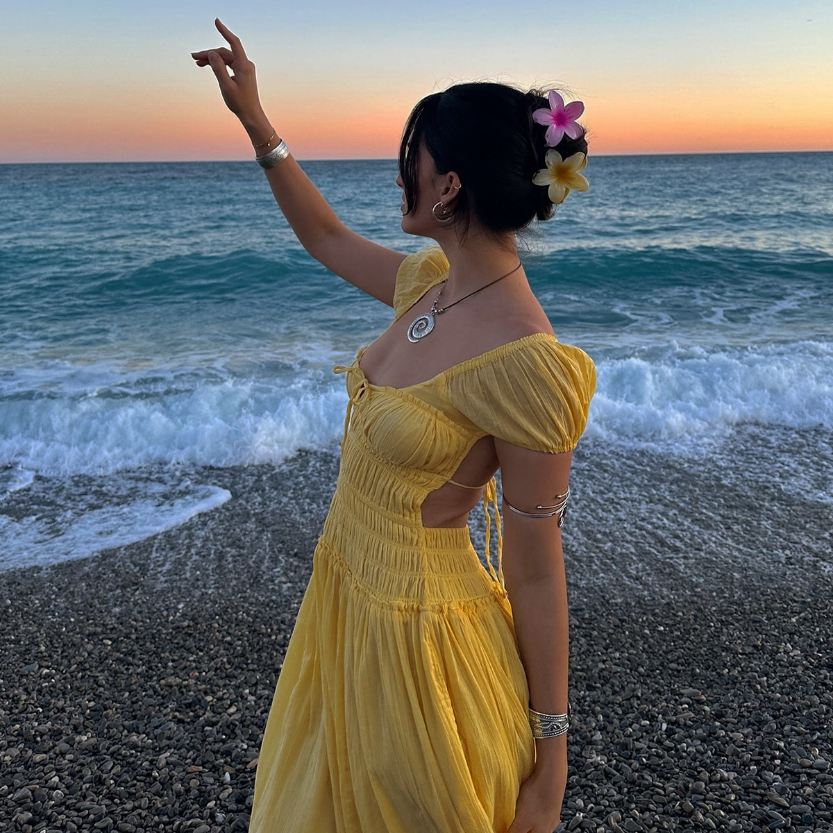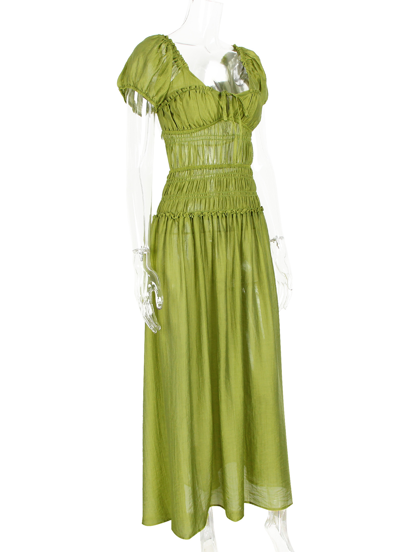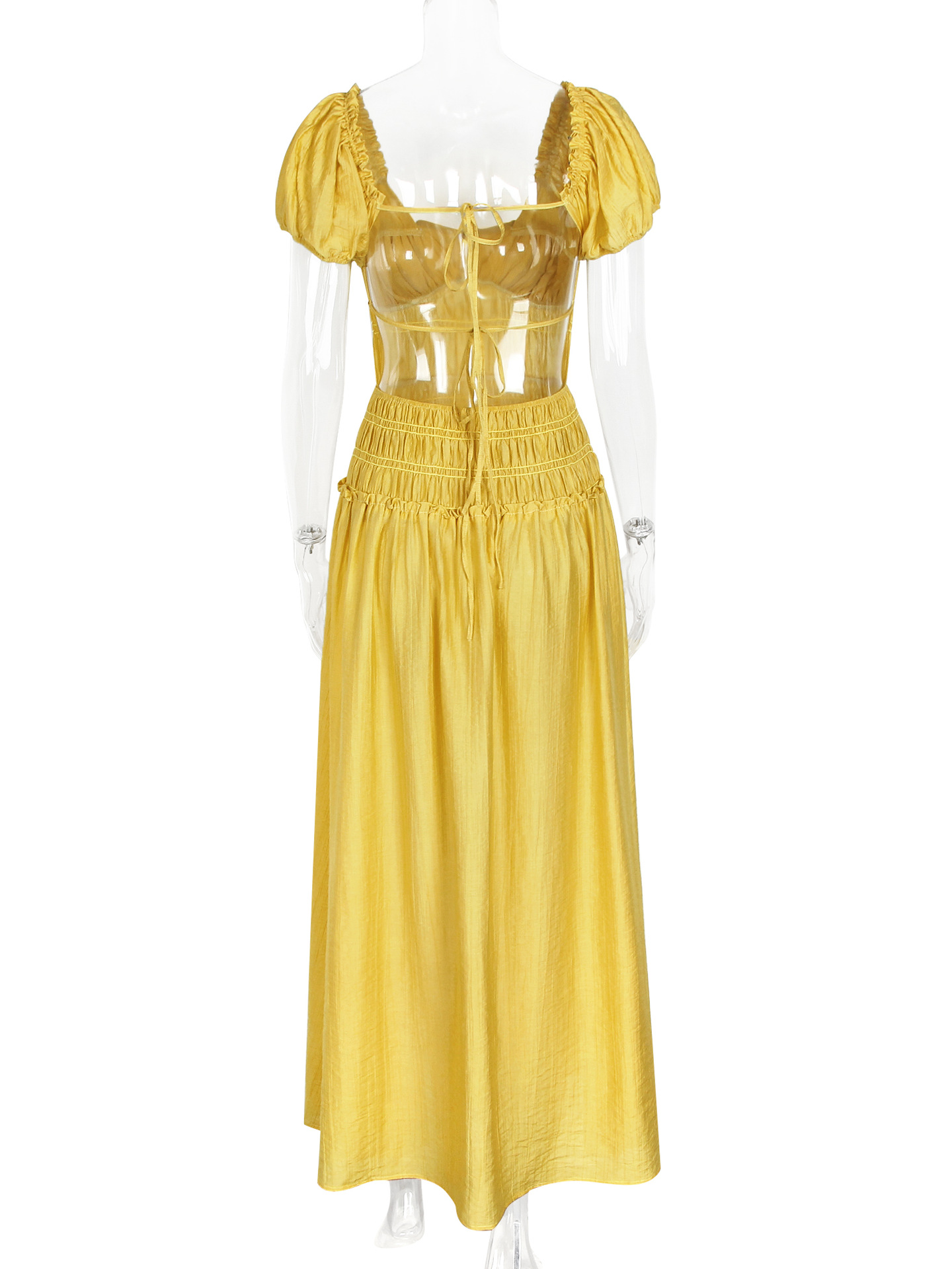 Women Summer Sexy Puff Short Sleeve Square Collar Vacation Backless Dress Women Summer Long Skirt Seaside Atmosphere Dress