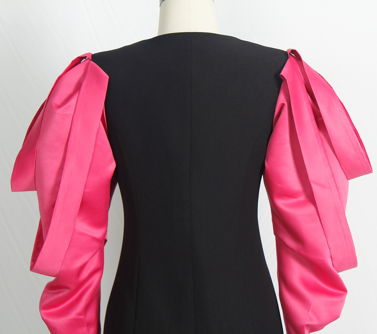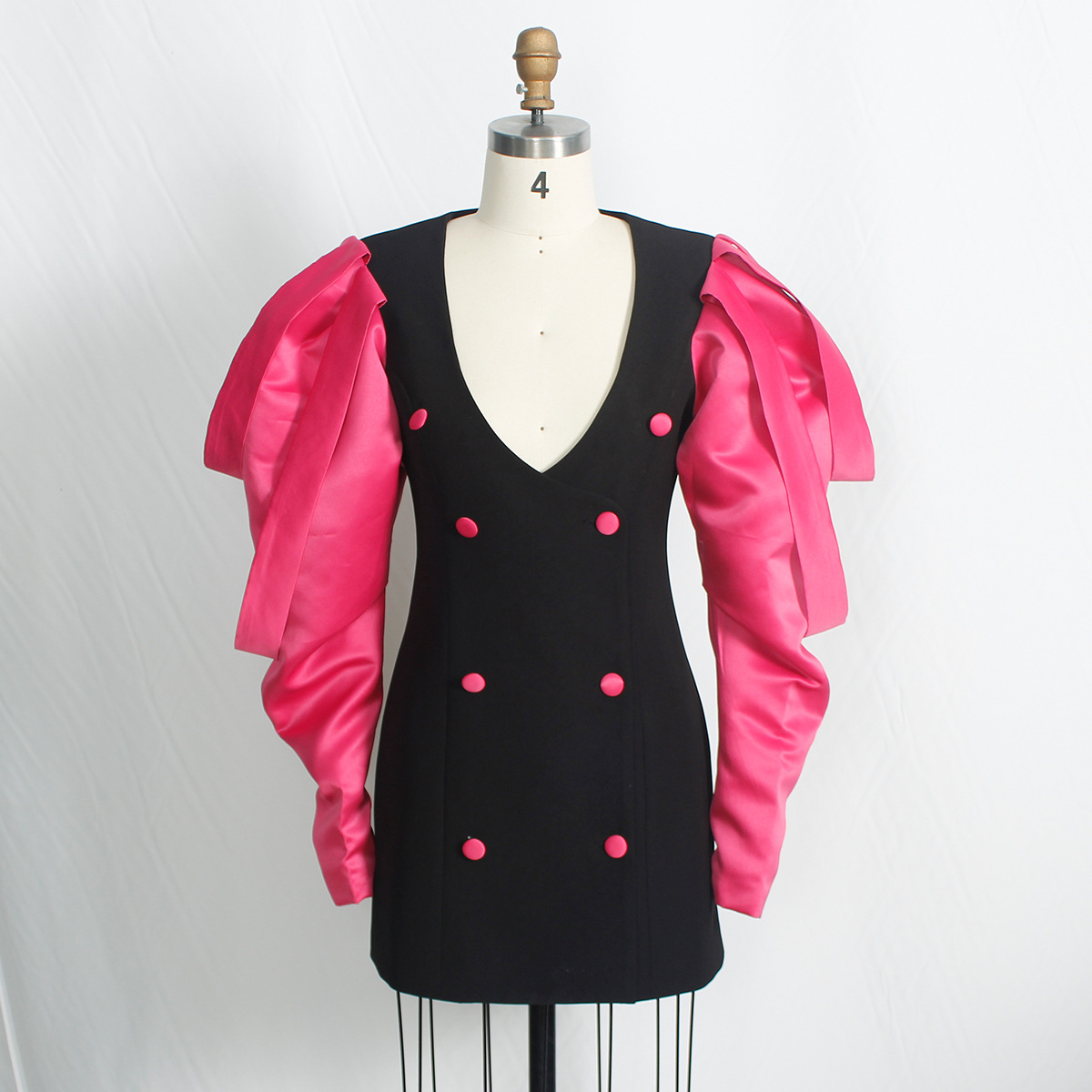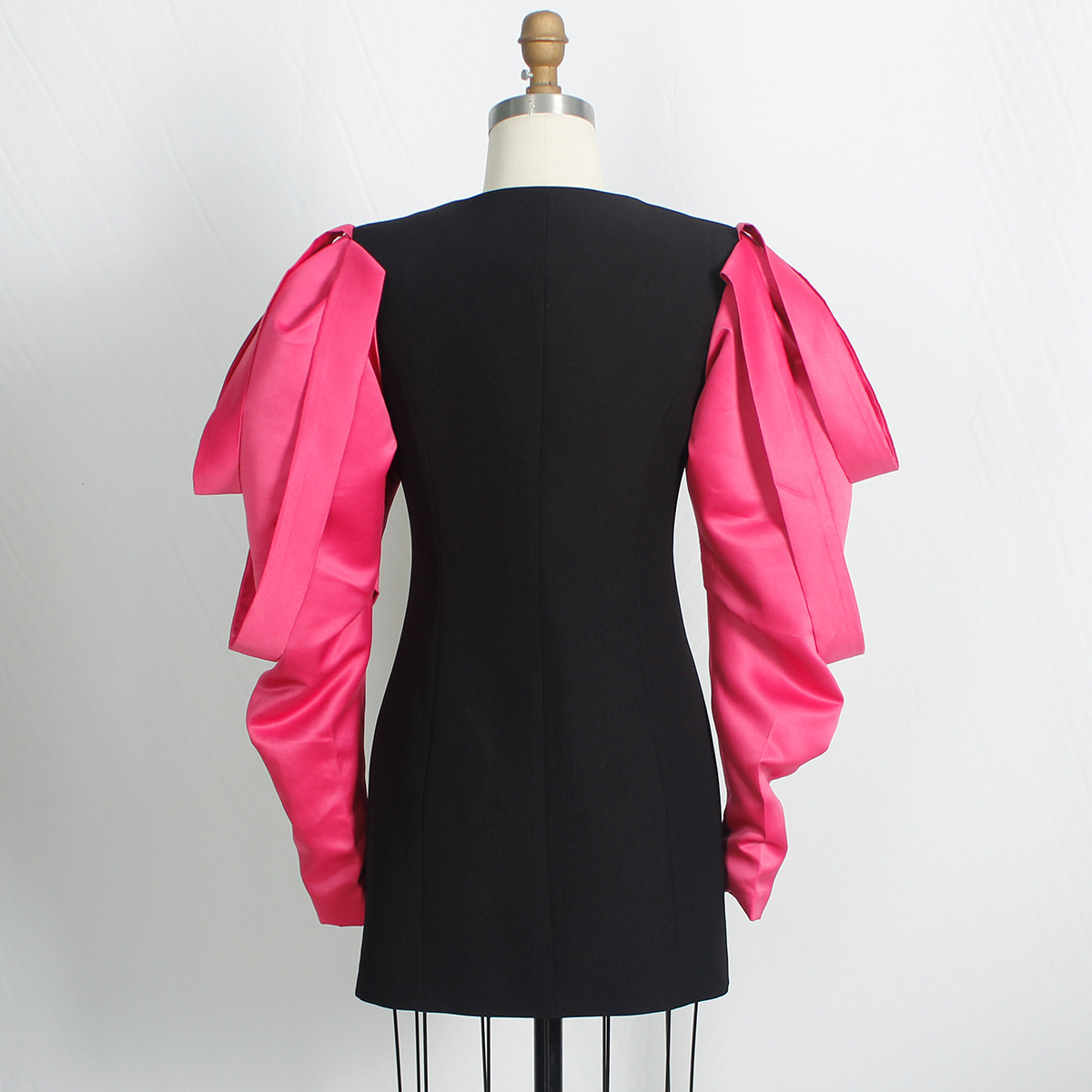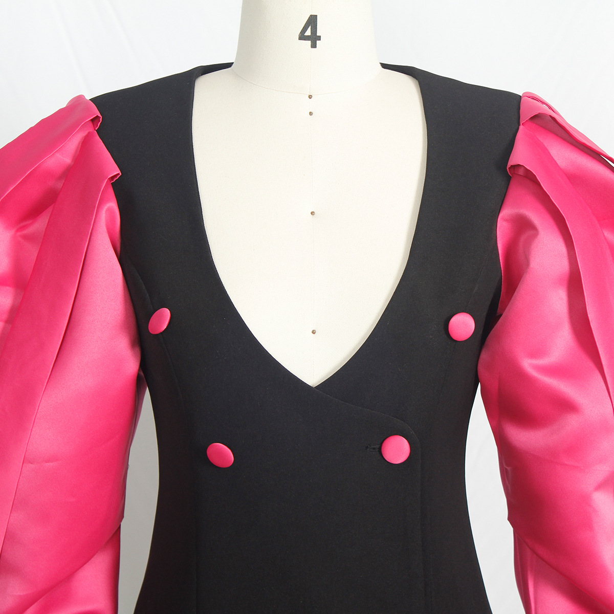 Vestido de mujer de estilo nicho creativo con mangas abullonadas y escote en V a juego de colores para otoño e invierno.