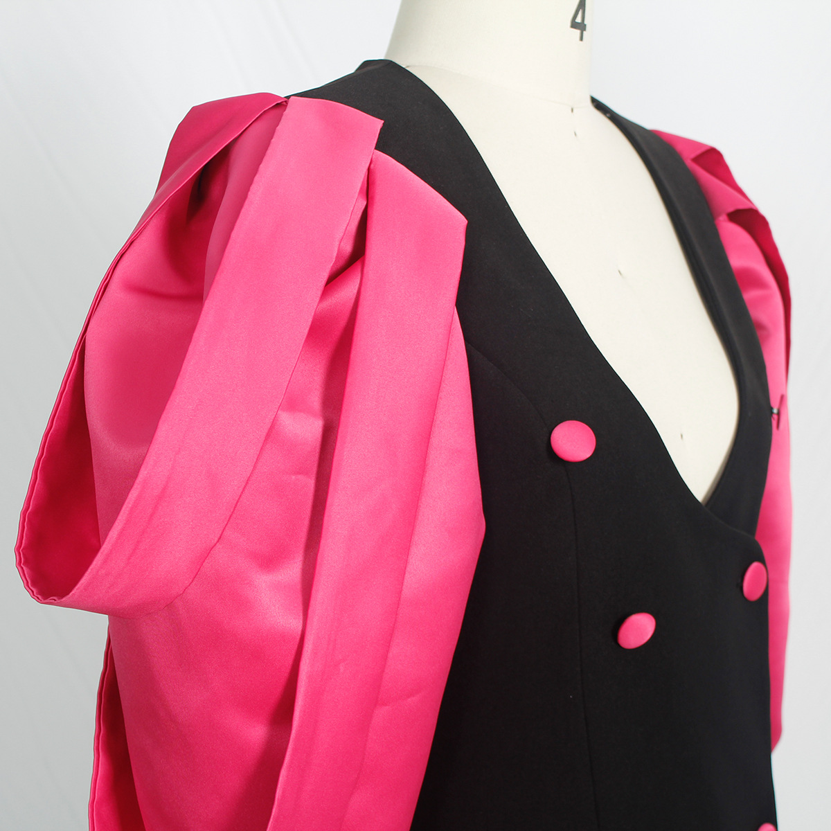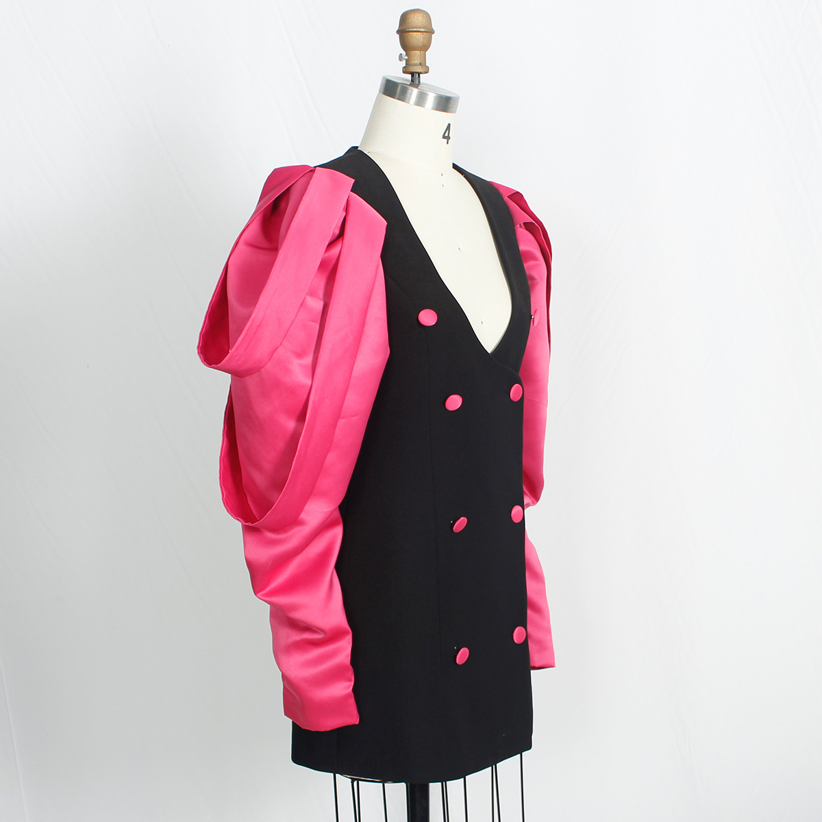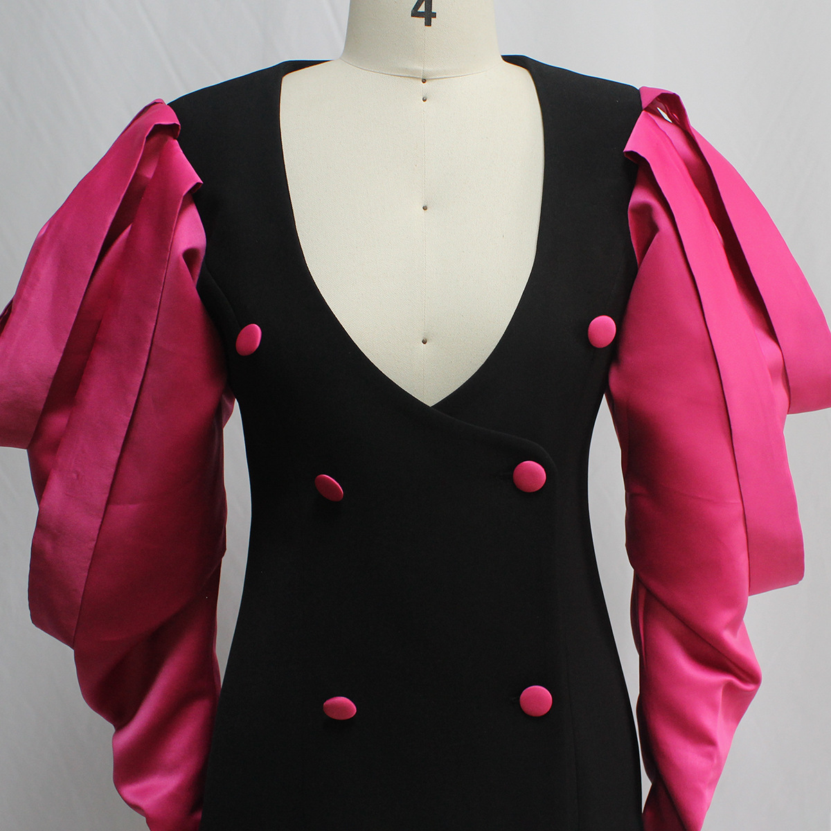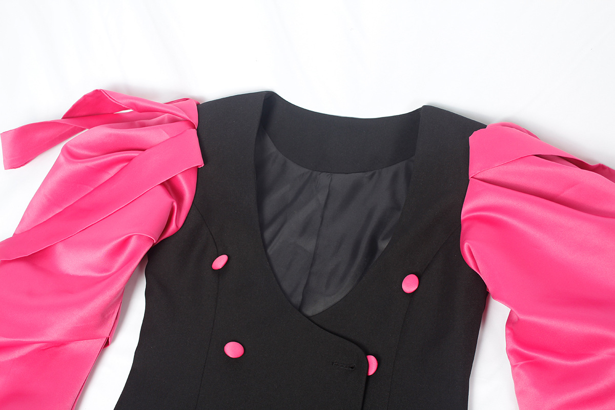 Vestido de mujer de estilo nicho creativo con mangas abullonadas y escote en V a juego de colores para otoño e invierno.