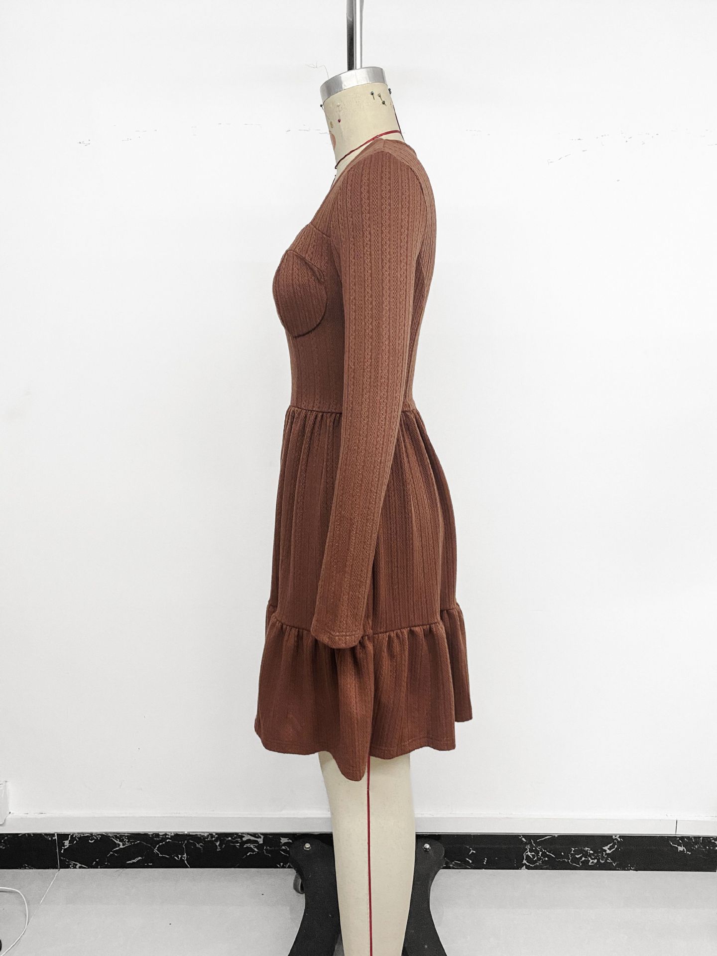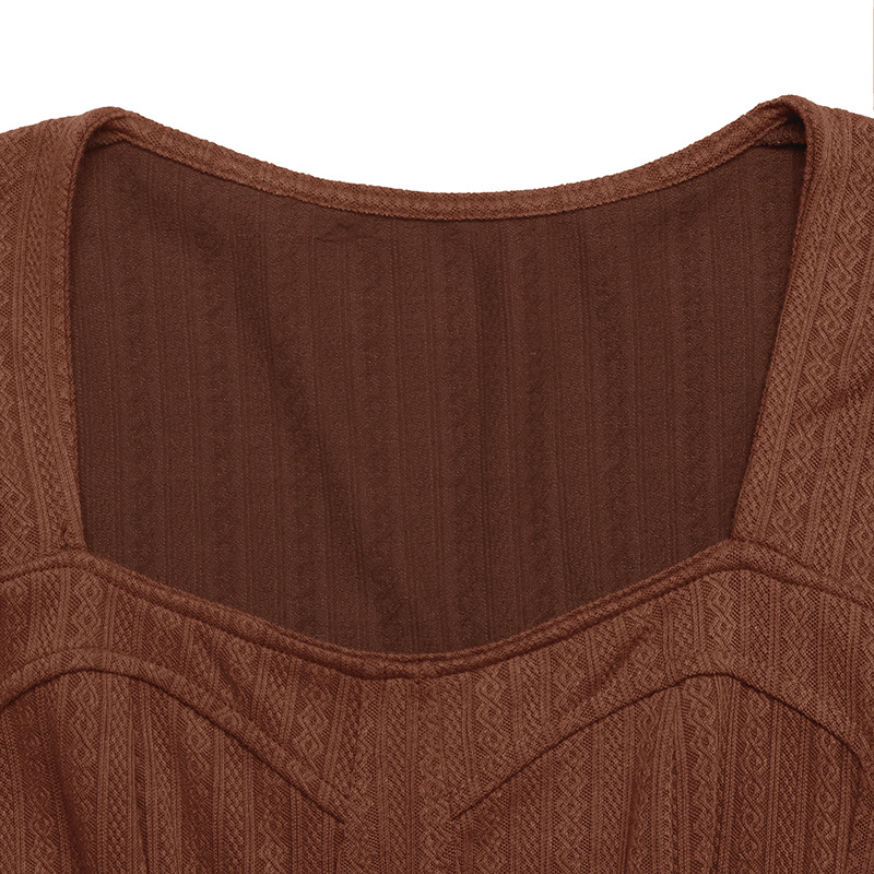Autumn Elegant Retro Waist Trimming Knitted Solid Color Square Collar A line Dress