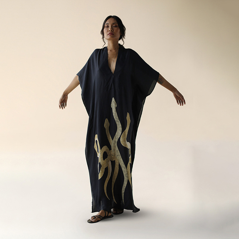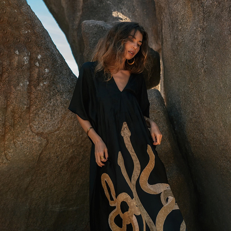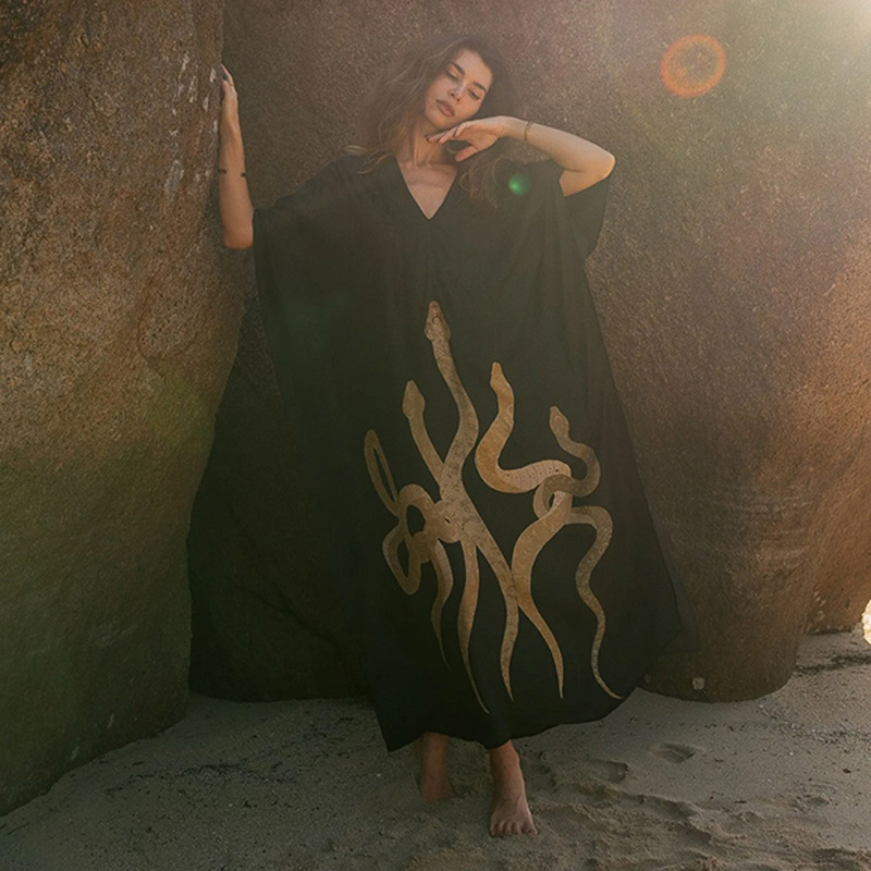 Beach Dress Women V neck Pullover Bikini Swimsuit Blouse Printing Sun Protective Clothing