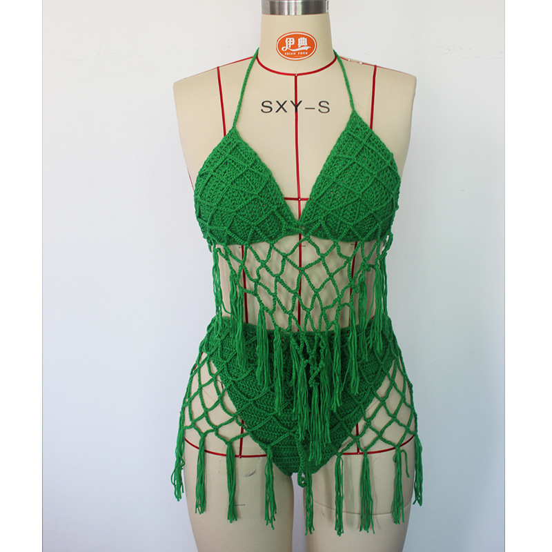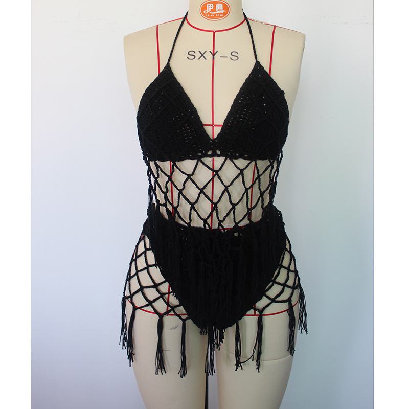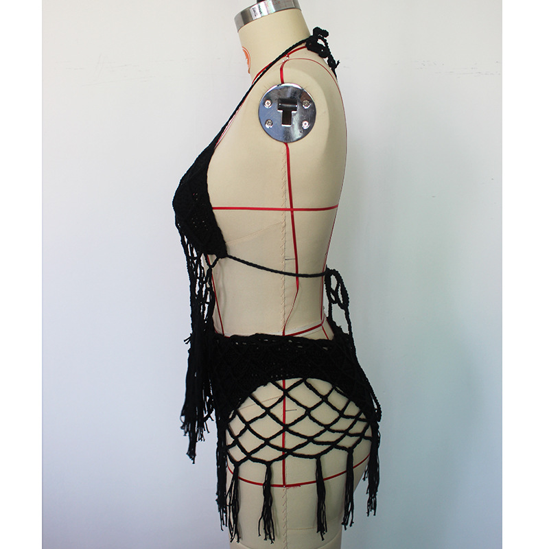 Cinturón de malla de ganchillo hecho a mano para viajes de playa, con flecos largos, recortes, tejido con cordones, sexy, espalda abierta, traje de baño, bikini, ganchillo