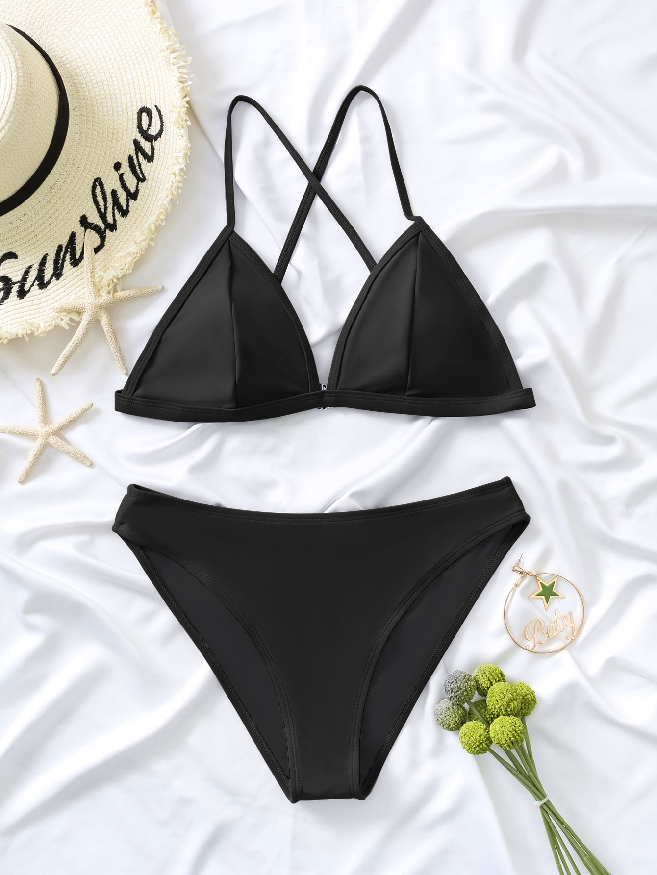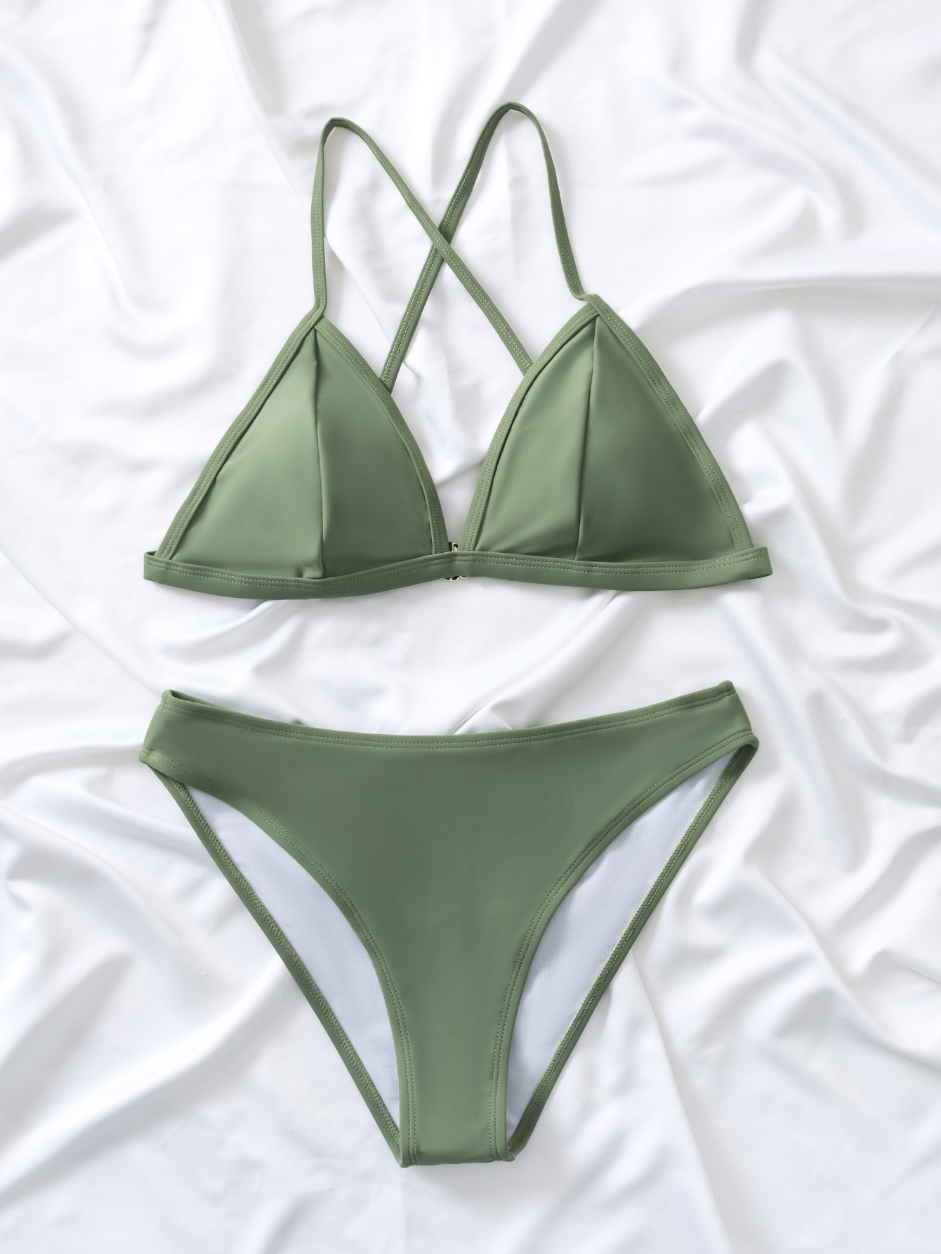 Bikini Solid Color Triangle Cross Backless Sexy Bikini Split Swimsuit Women