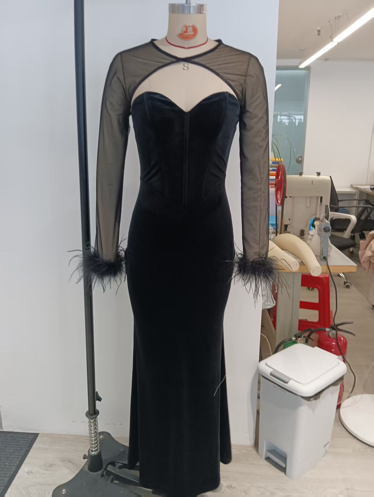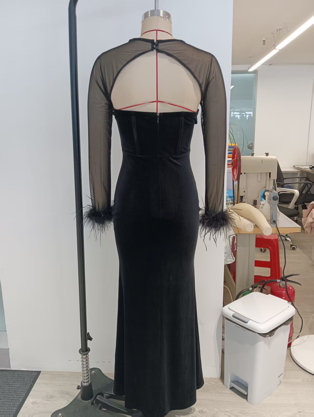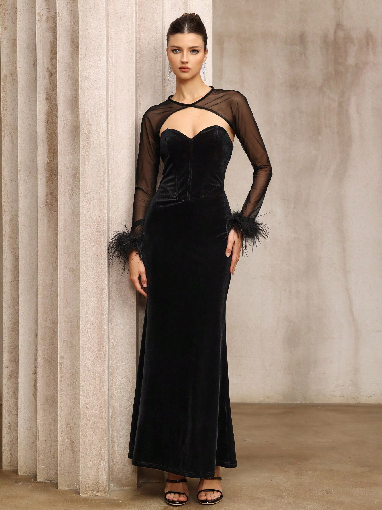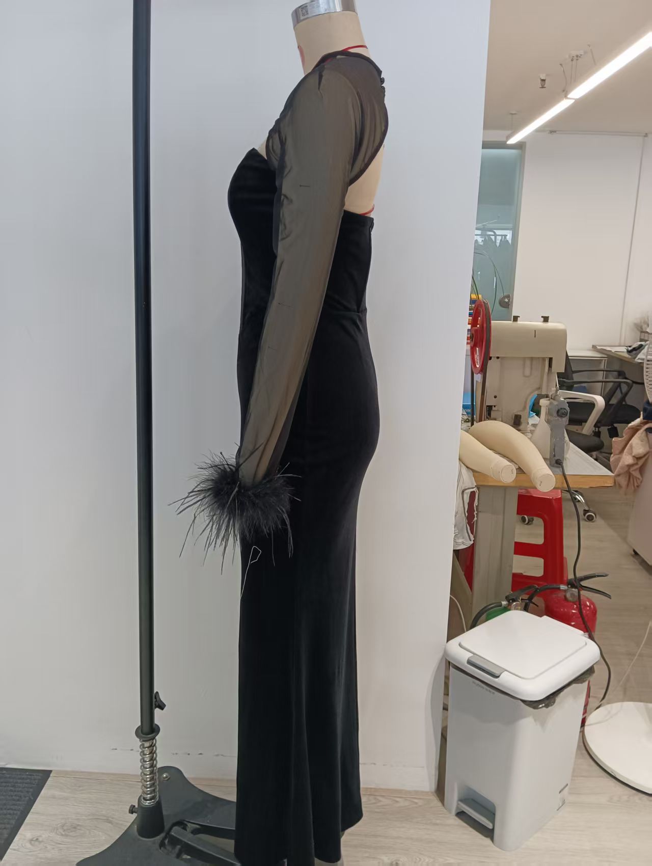 Dress Two Piece Semi Transparent Mesh Top Velvet Tube Top Dress Dinner Light Luxury Cheongsam