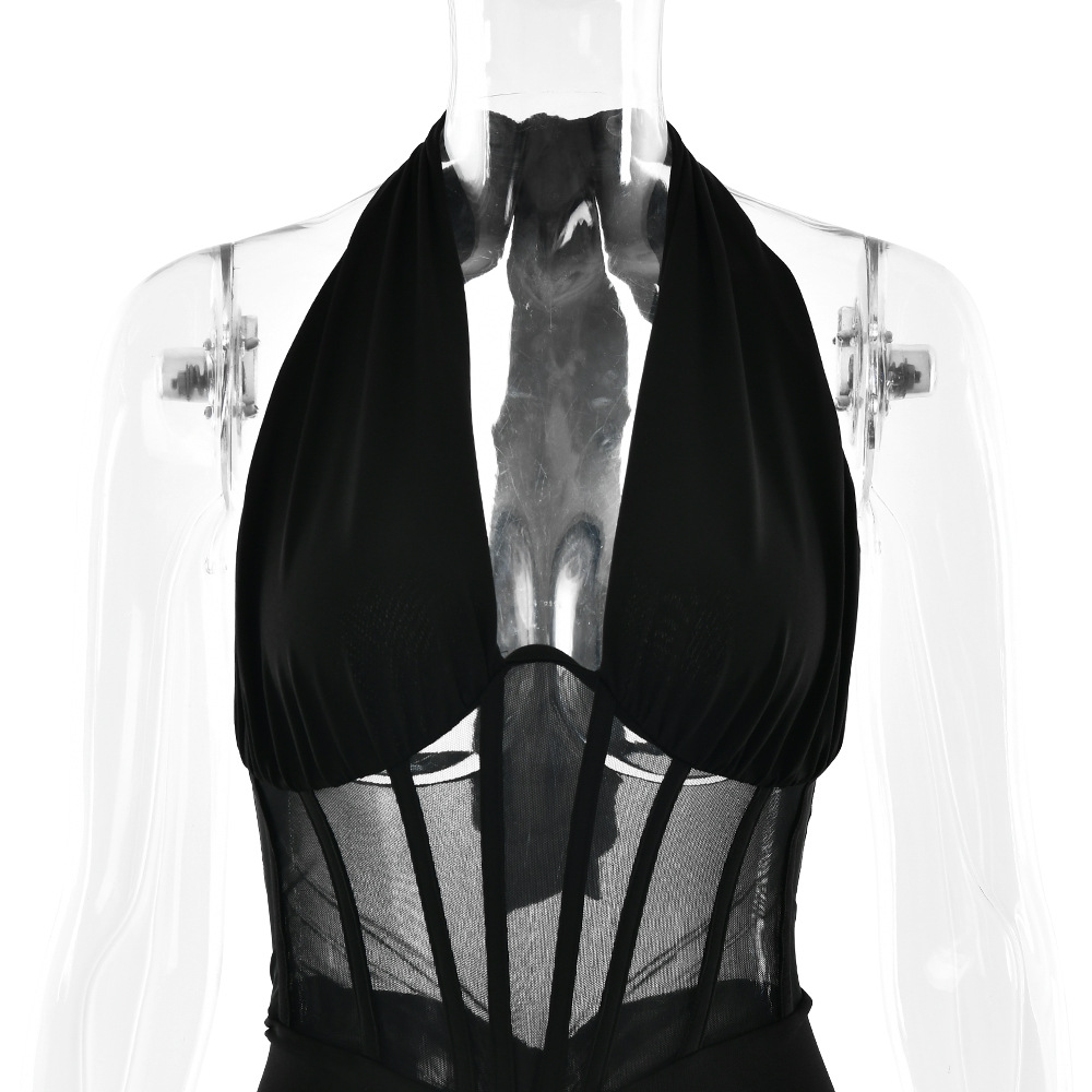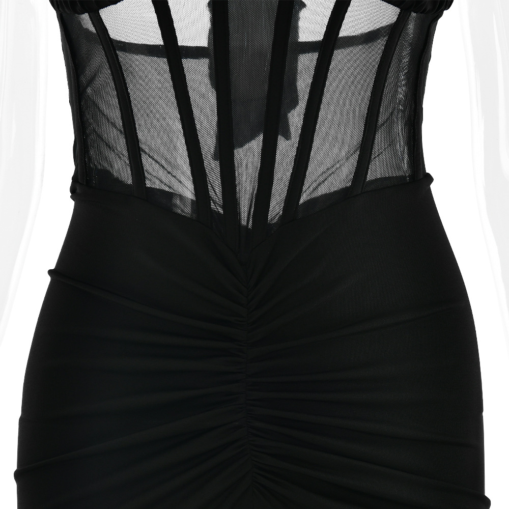 Element: Lace/Tulle/Fishnet,Tie,Backless,Boning,Patchwork,Ruched