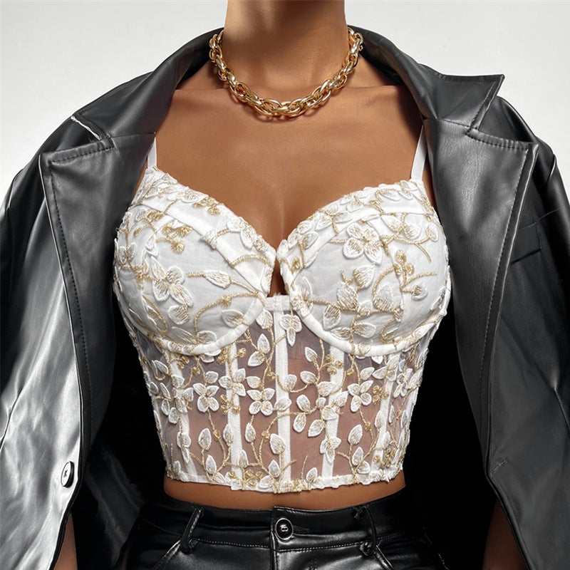 Embroidery Floral Waist Sexy Mesh See through Small Vest Female Boning Corset Boning Corset Corset