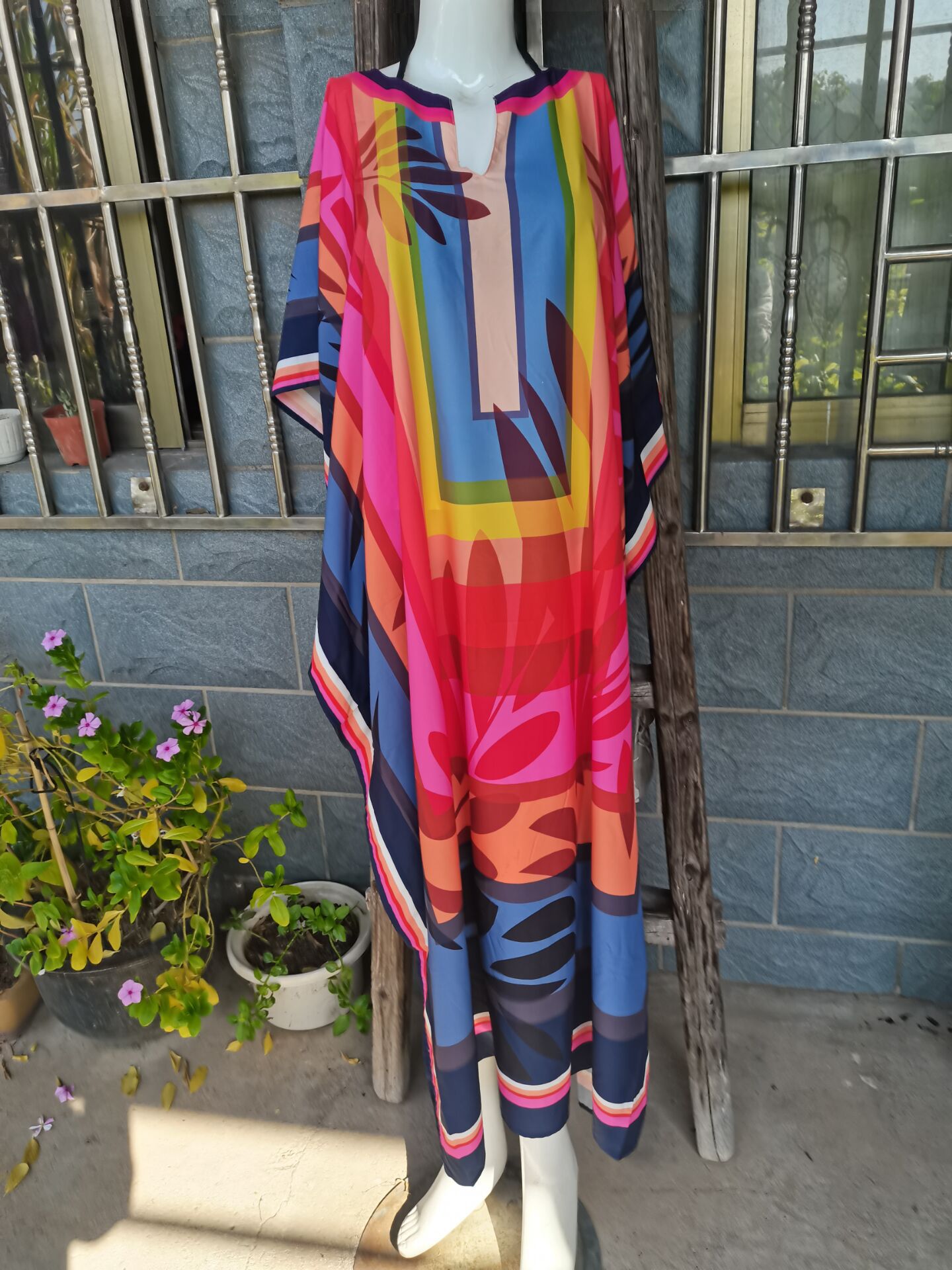 Bata estampada de tela para vacaciones, informal, para playa, bikini