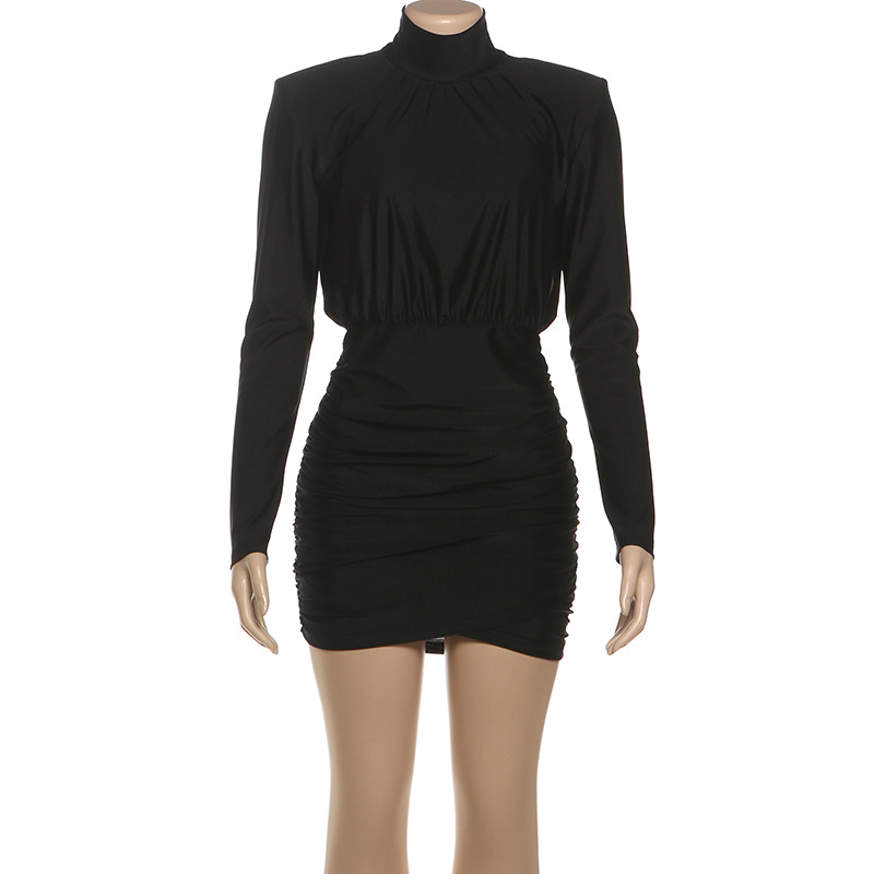 Fall Sexy Slim Fit Turtleneck Long Sleeve Narrow Short Solid Color Dress