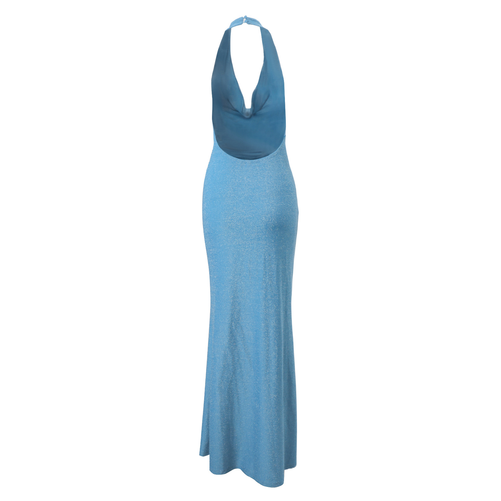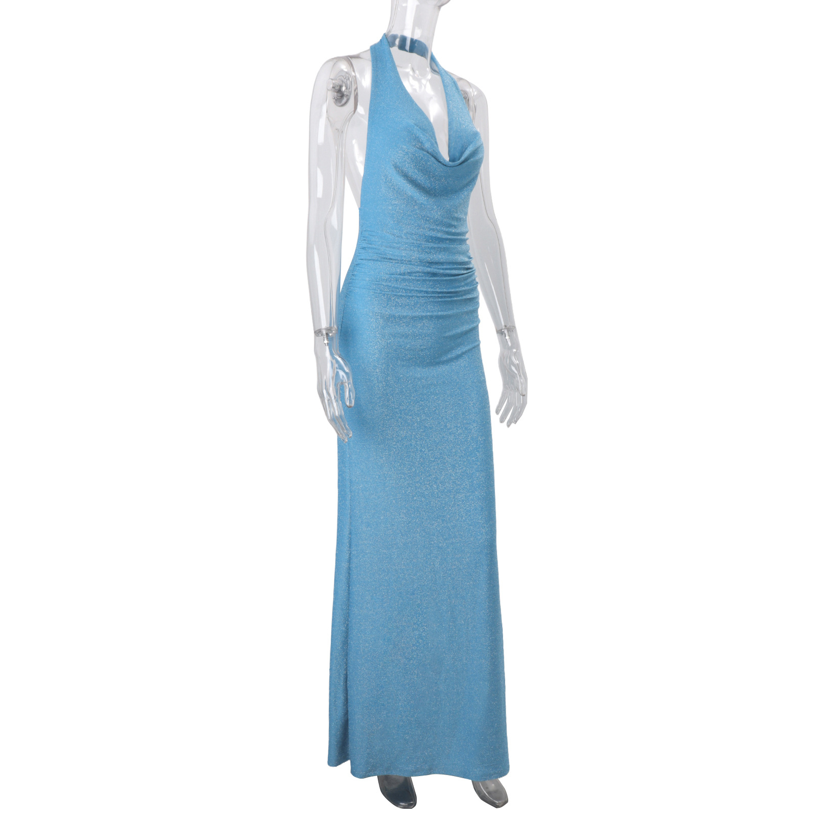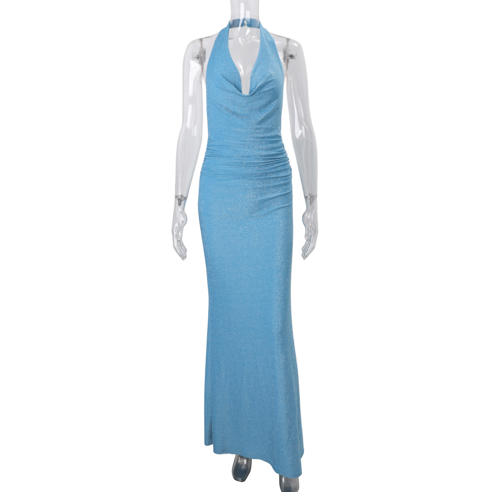 Fall Women Clothing Sexy Backless Halter Swing Collar Solid Color High Waist Slim Hip Long Dress