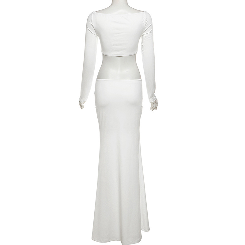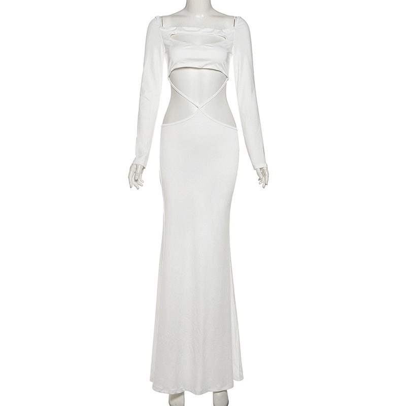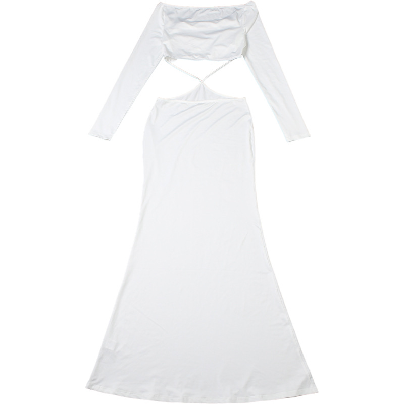 Fall Women Clothing Solid Color Sexy Cutout off Neck Slim Fit Long Sleeve Narrow Dress Women