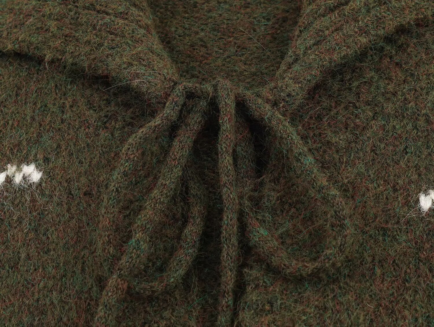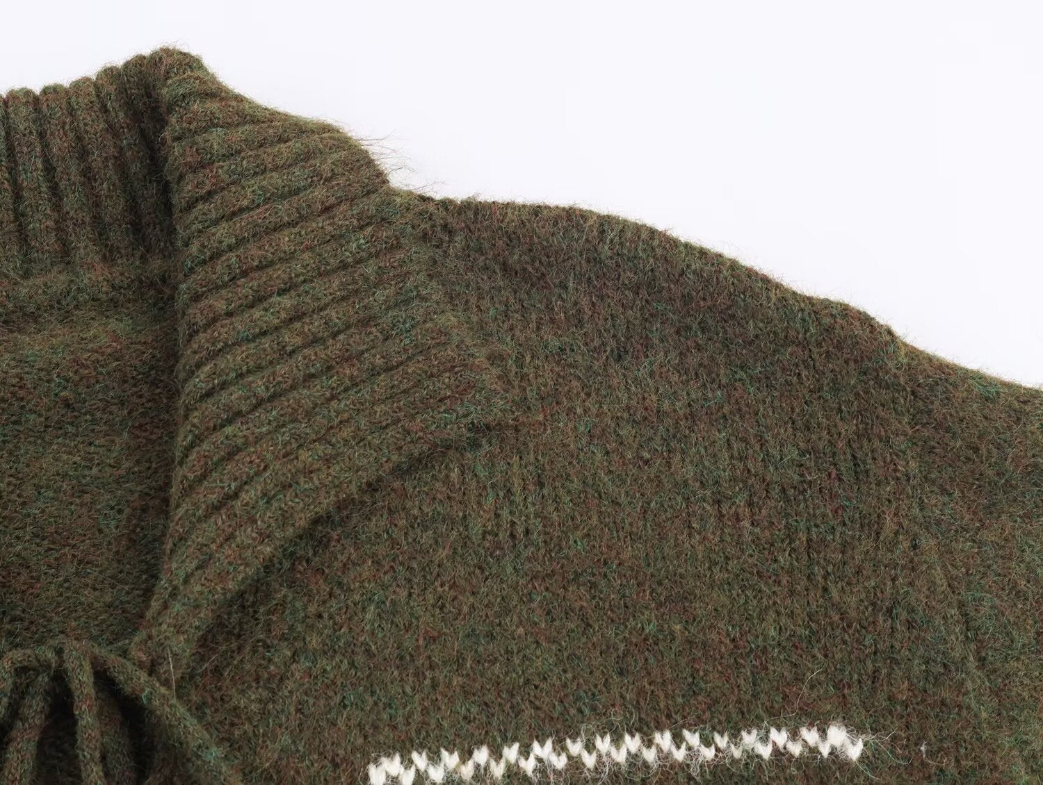 Idle Retro Lapels Jacquard Lace up Knitted Cardigan Autumn Loose Slimming Sweater Coat for Women