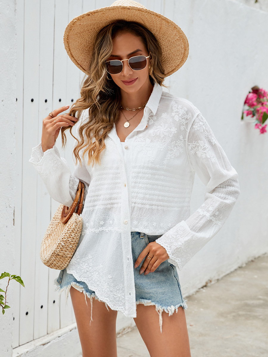 Lace Long Sleeve Shirt Women Spring Autumn Design Tulle Top Loose Cardigan