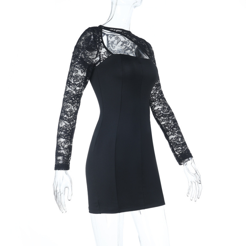 Lace Stitching Long Sleeve Slim Fit Sheath Dress Women Arrival Sexy Dress