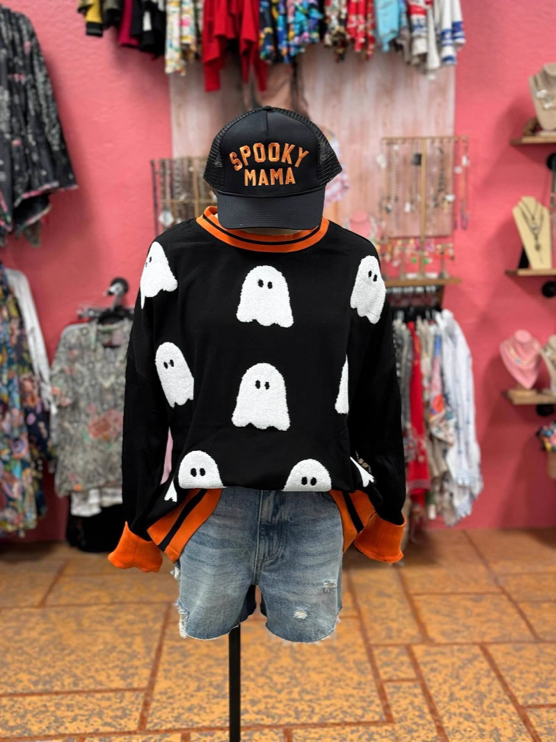 Ladies Summer Holiday Casual Halloween Ghost Embroidery Contrast Color Sweatshirts