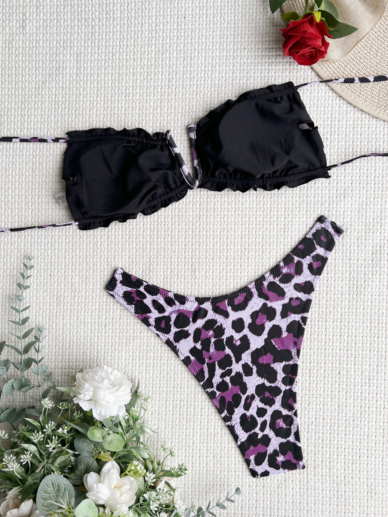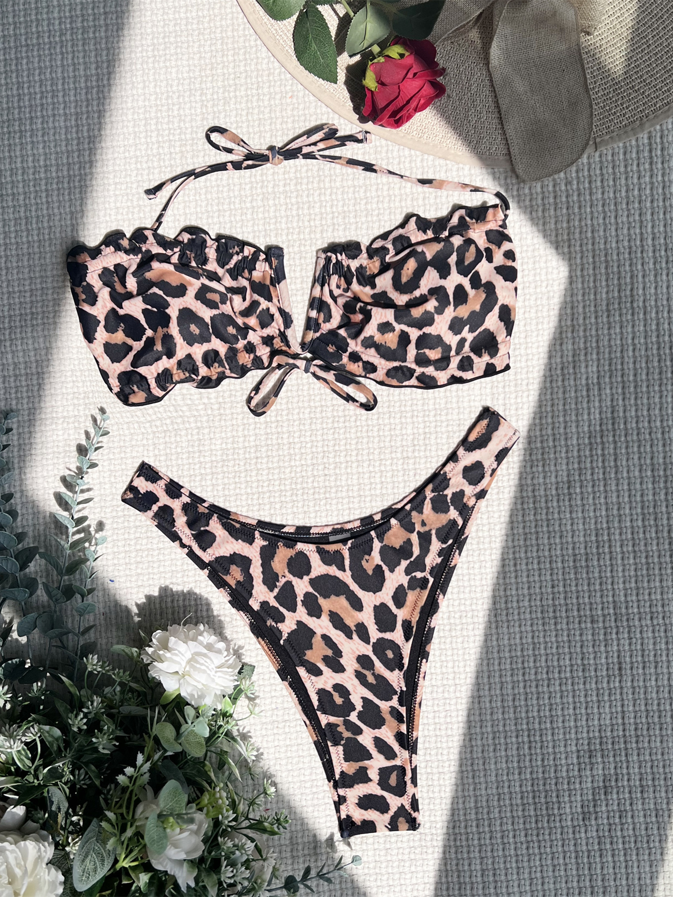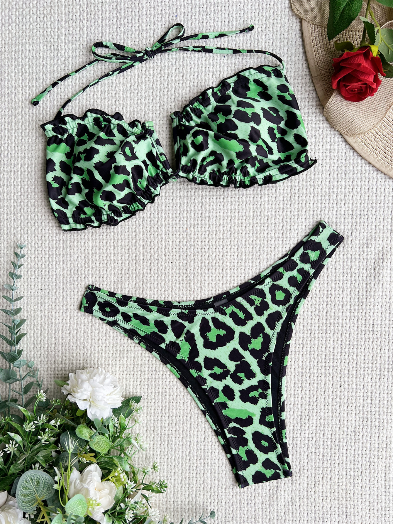 Bikini con estampado de leopardo y zapatillas en V, traje de baño sexy para mujer, traje de baño estampado