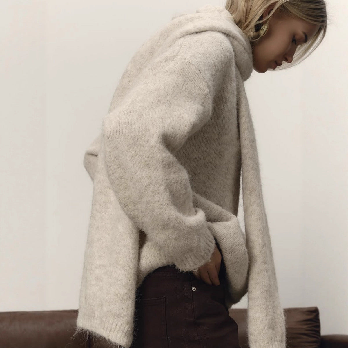 Loose Lazy Soft Wool Sweater Women Autumn Winter Pullover Loose Sweater Scarf Set