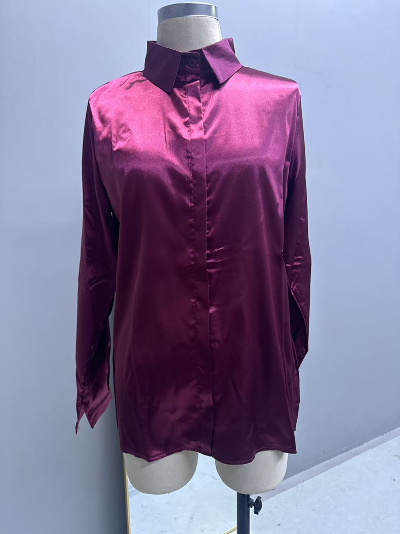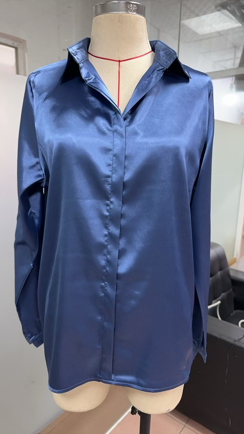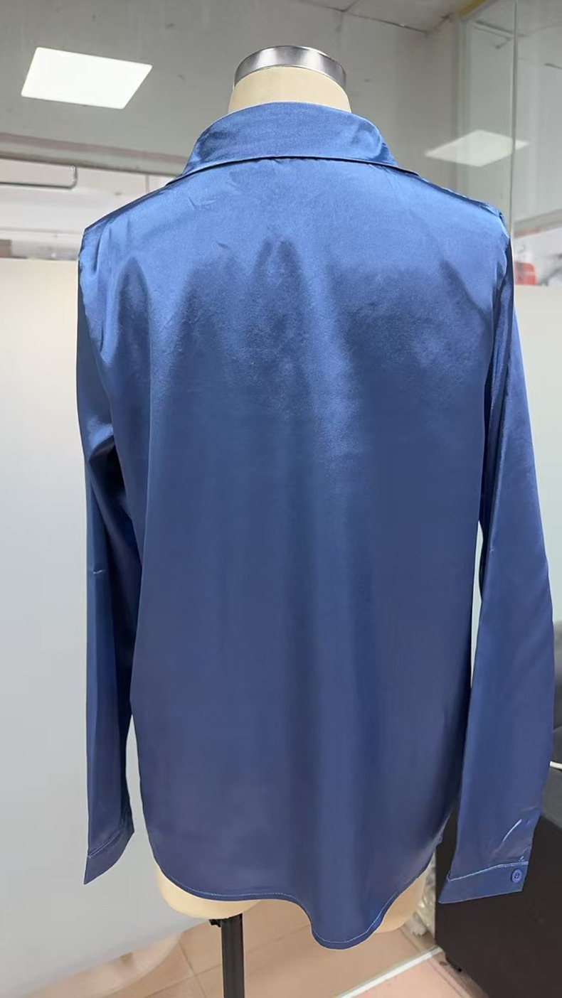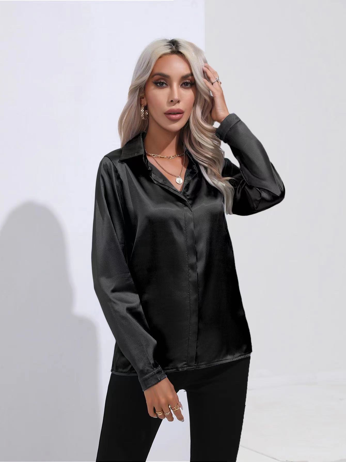 One Button Satin Shirt Office Long Sleeve Shirt Spring Summer Loose Top Women Clothing