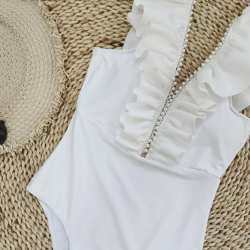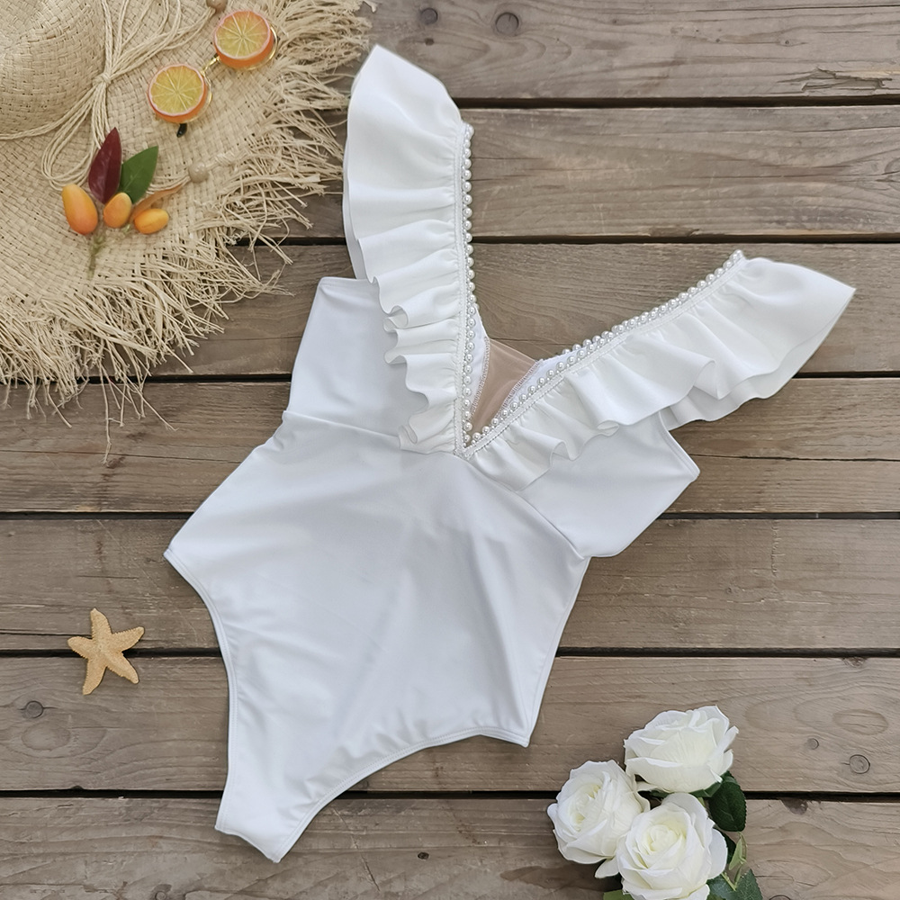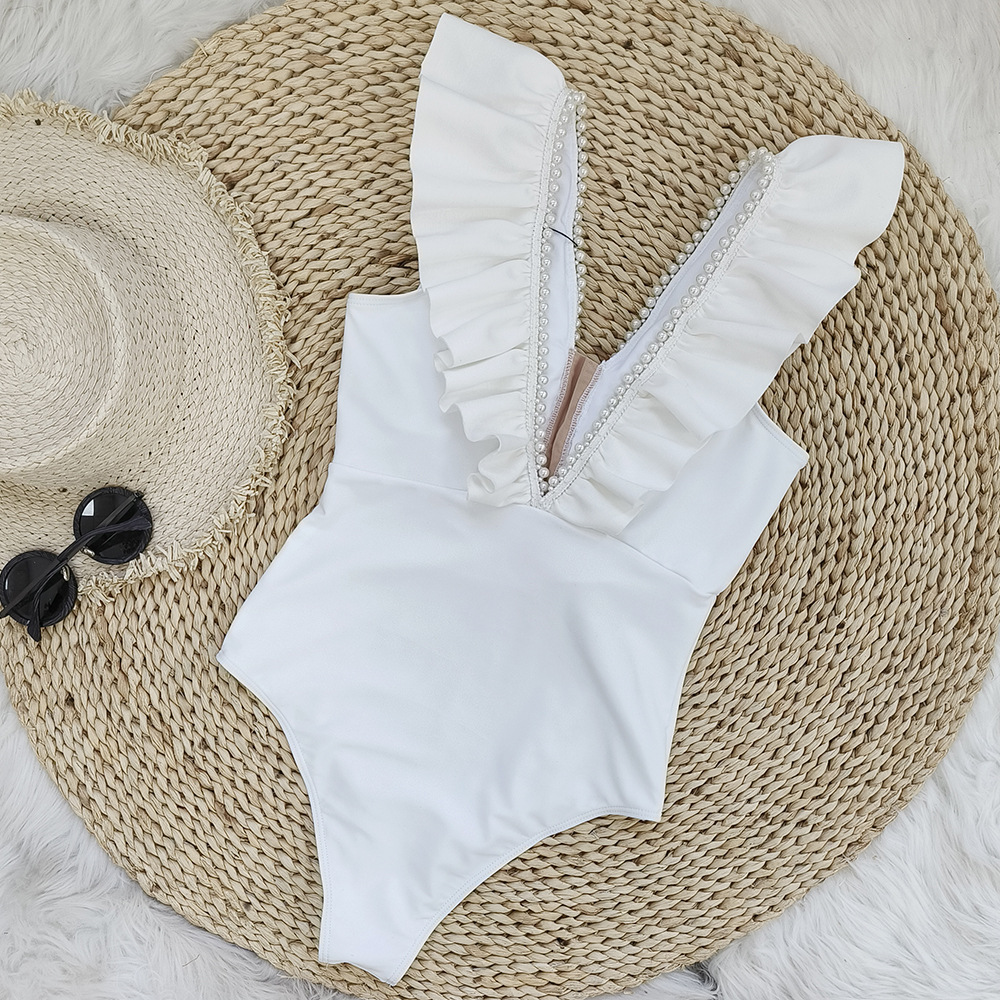 Traje de baño de una pieza de color sólido para mujer, escote en V profundo, cintura alta, traje de baño de una pieza