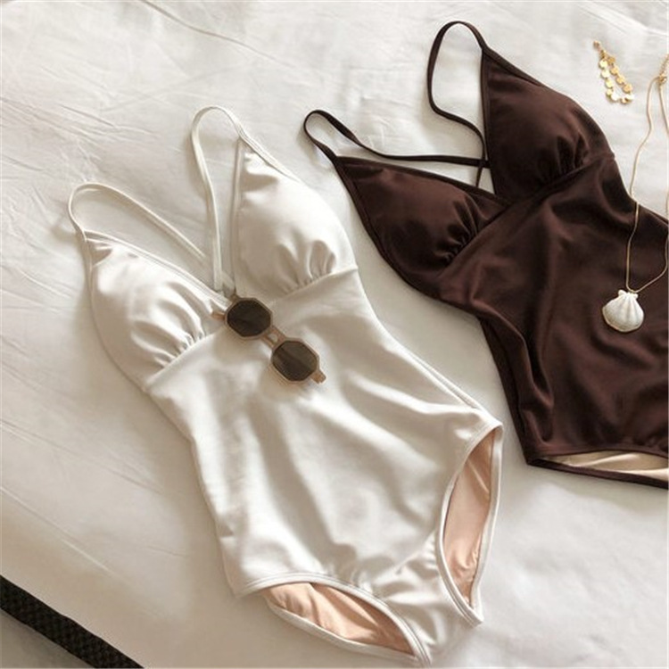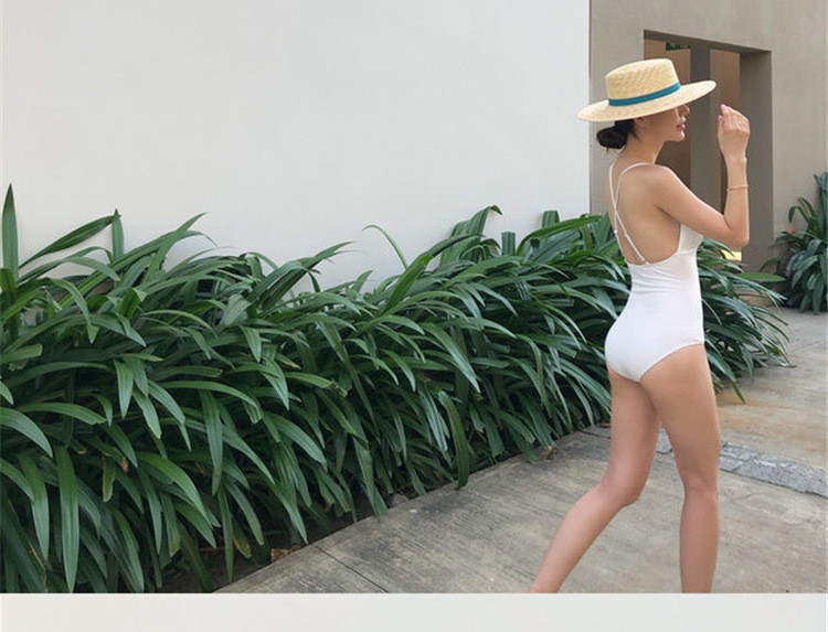 Traje de baño de una pieza de color sólido con cobertura conservadora y fino para mujer, bikini estilo halter para mujer
