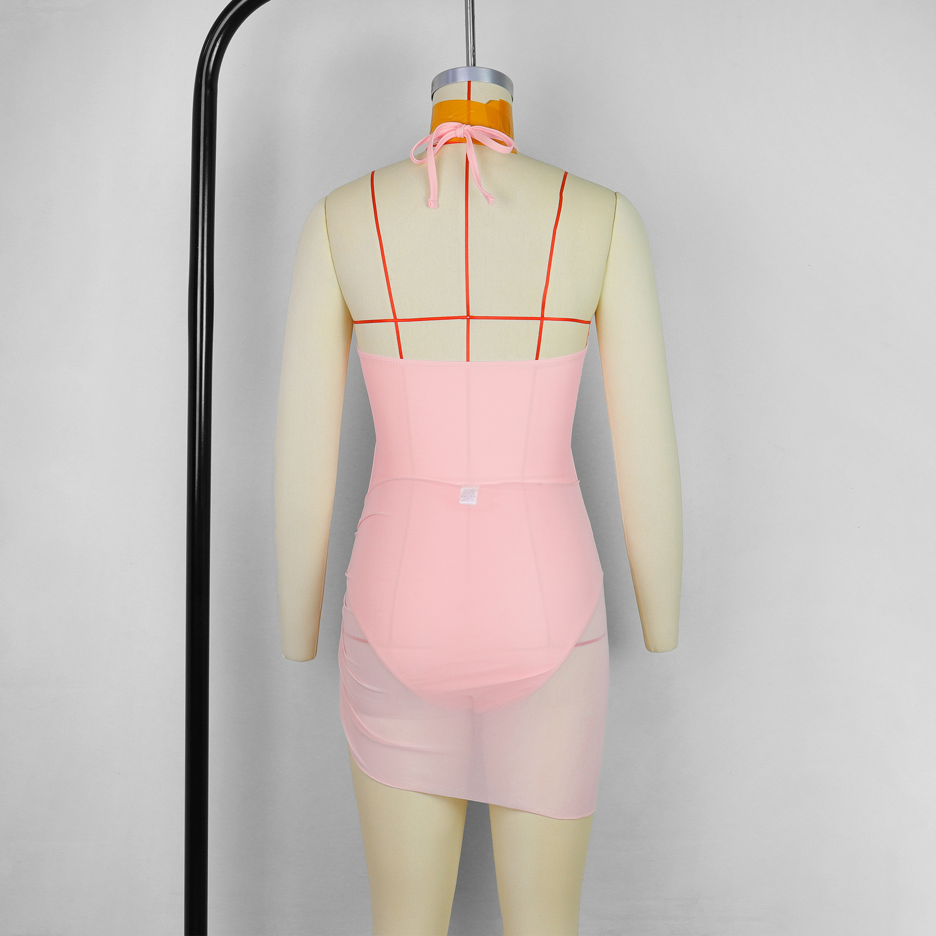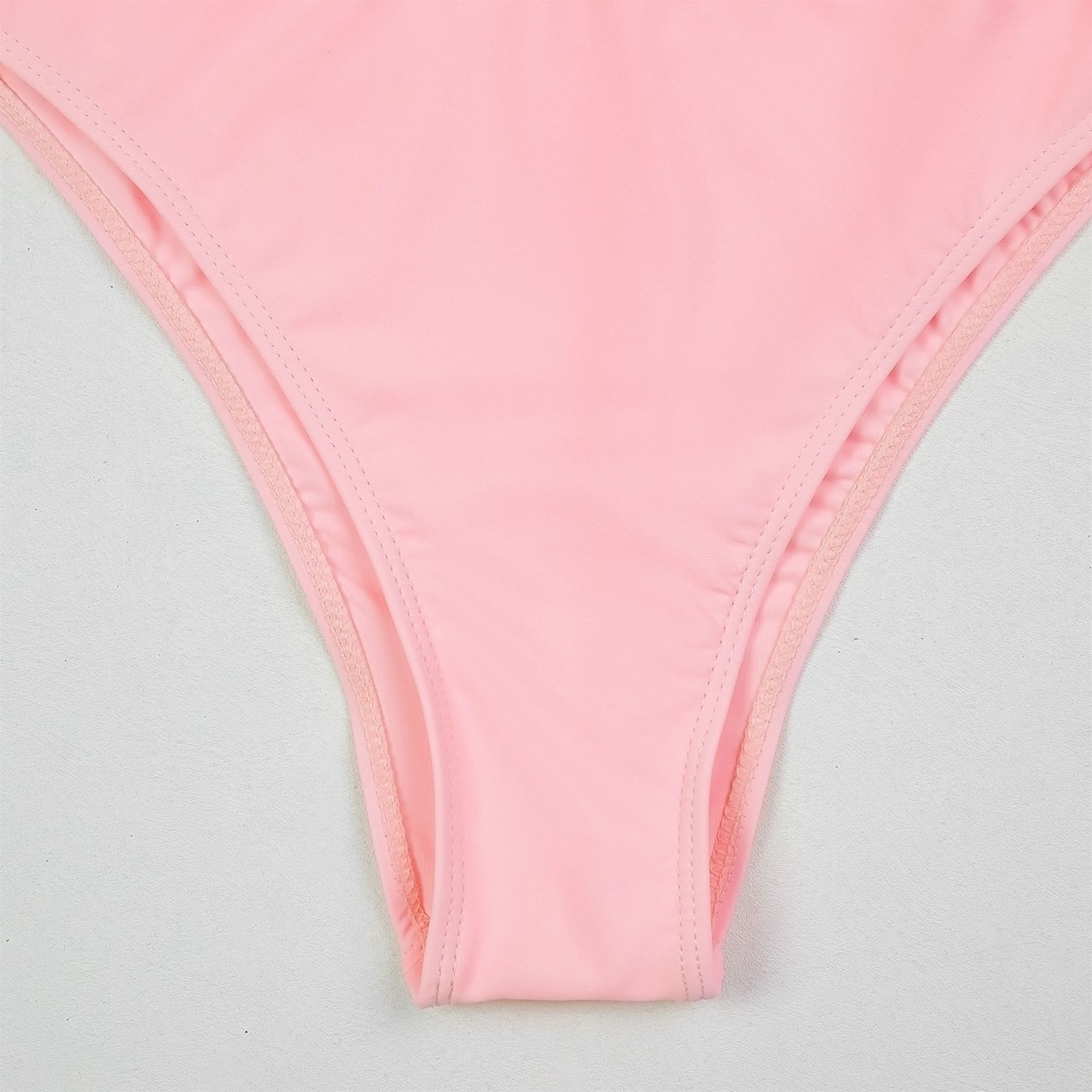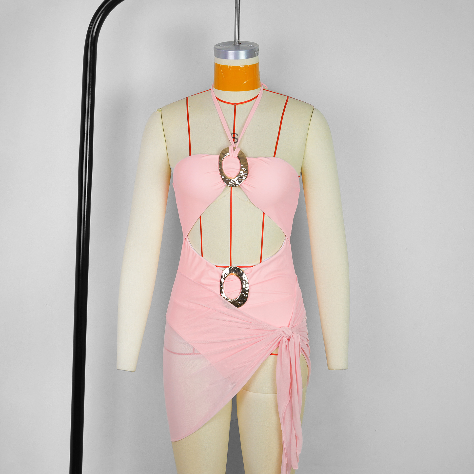 One Piece Swimsuit Women Halter Strap Two Piece Sexy Bikini Hollow Out Cutout Metal Solid Color Swimsuit Bikini