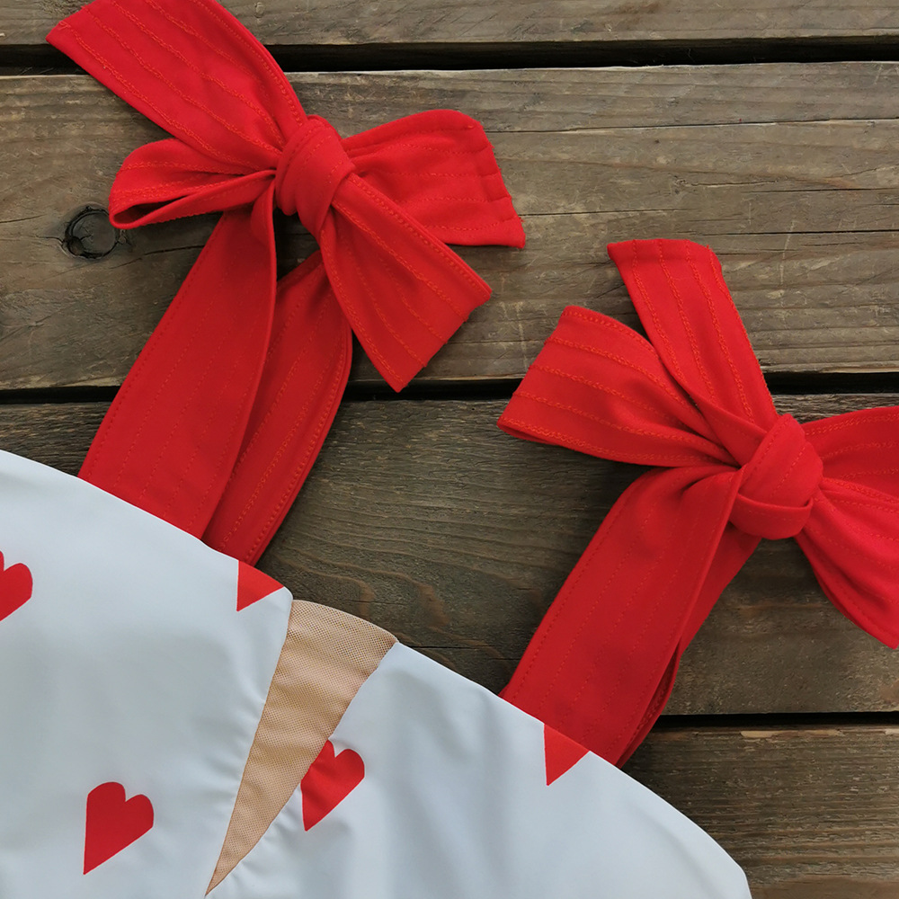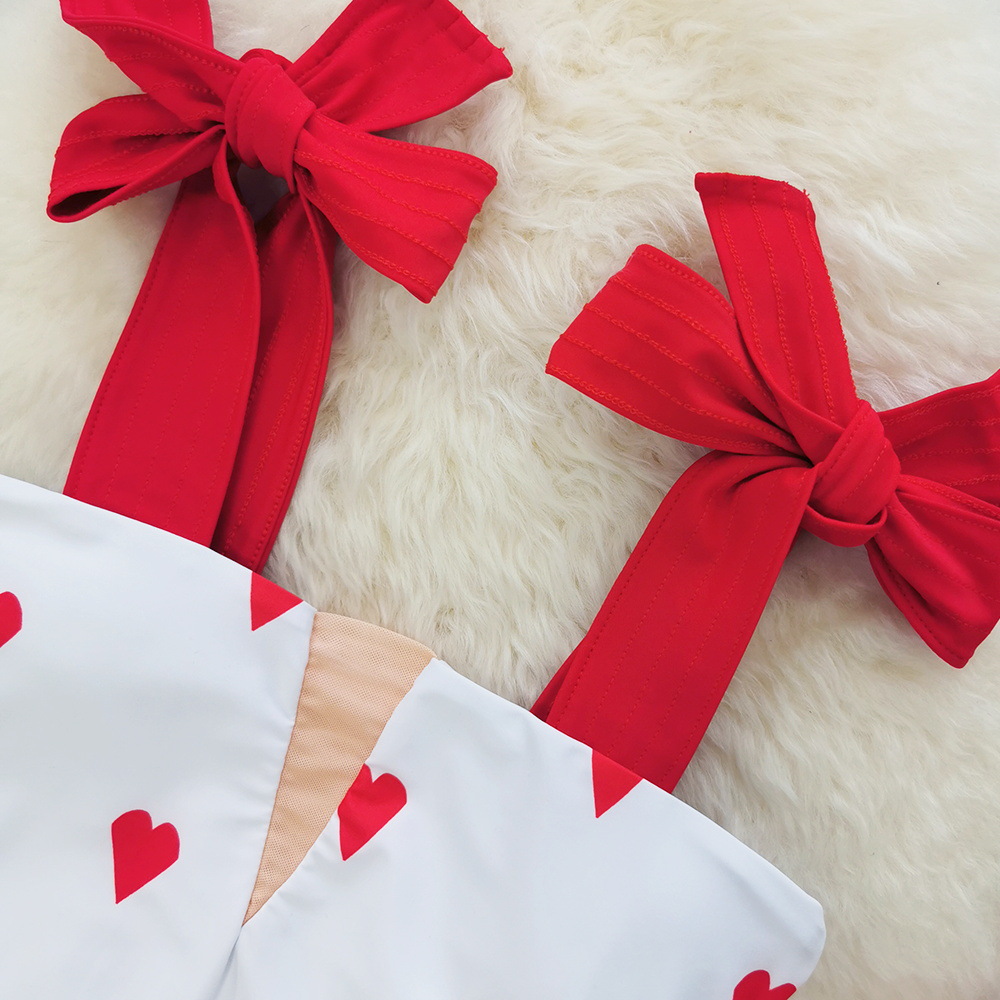 Traje de baño de una pieza para mujer, sexy, con tirantes y parte superior de tubo, de cintura alta, con estampado de amor