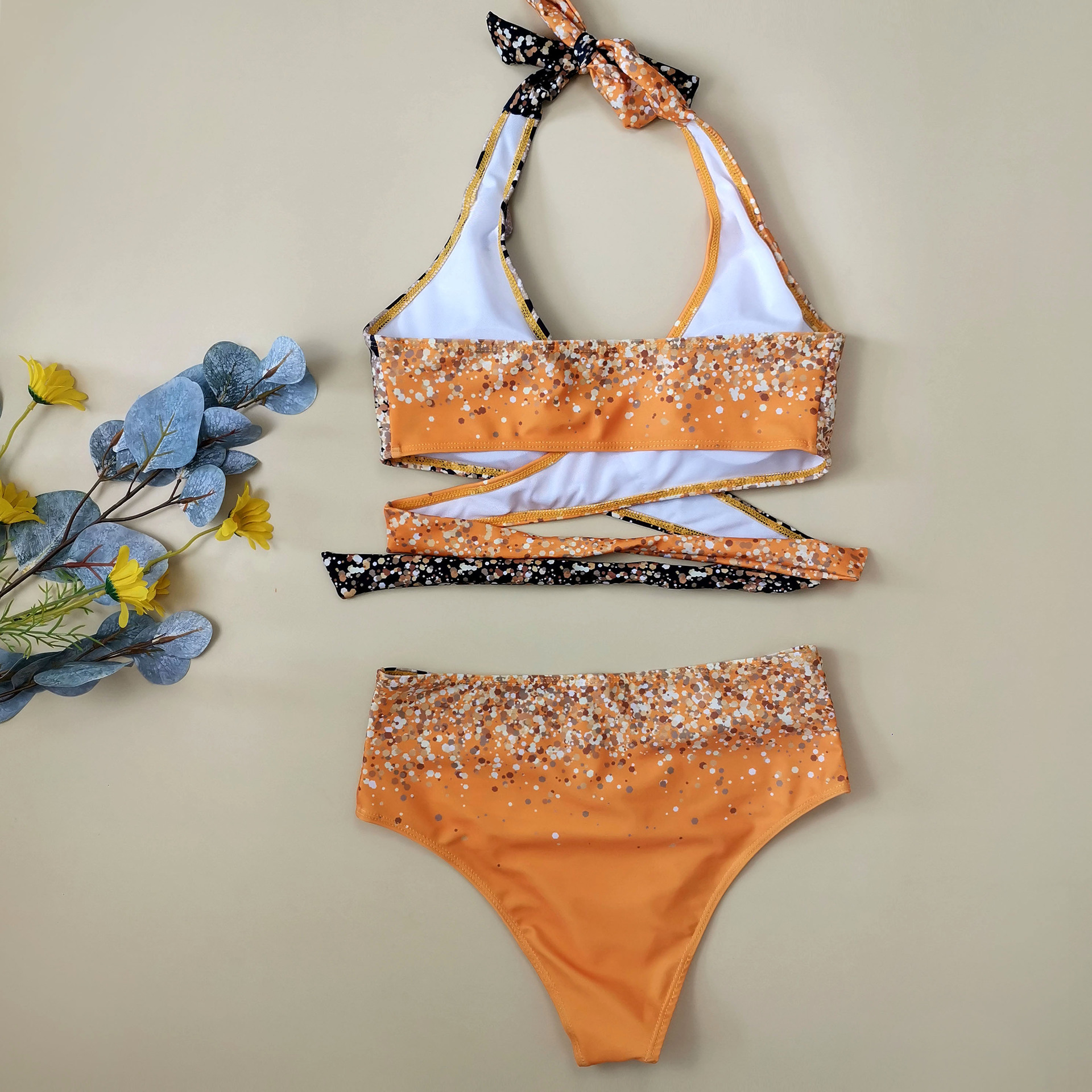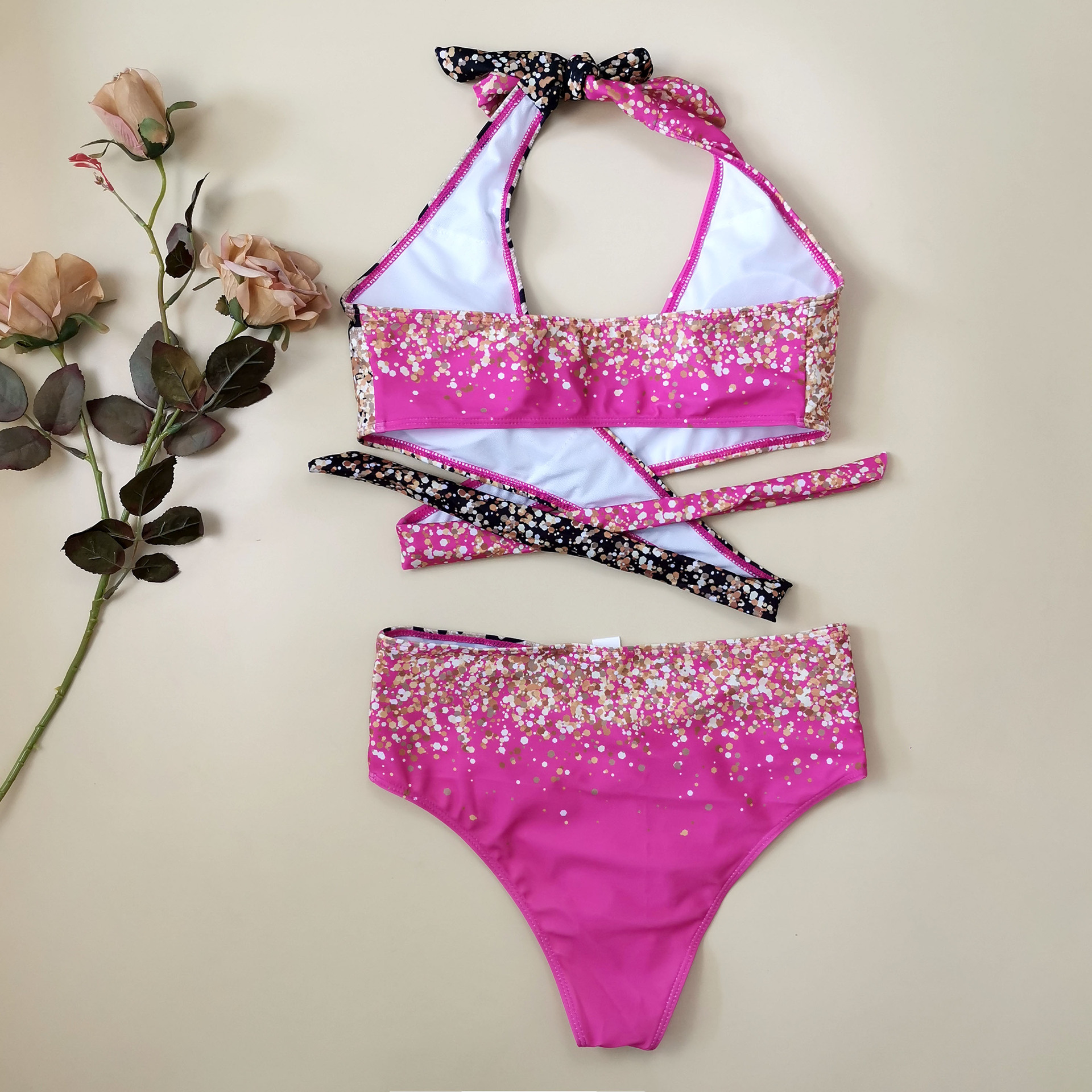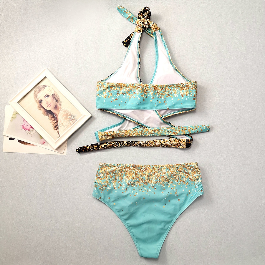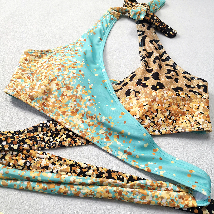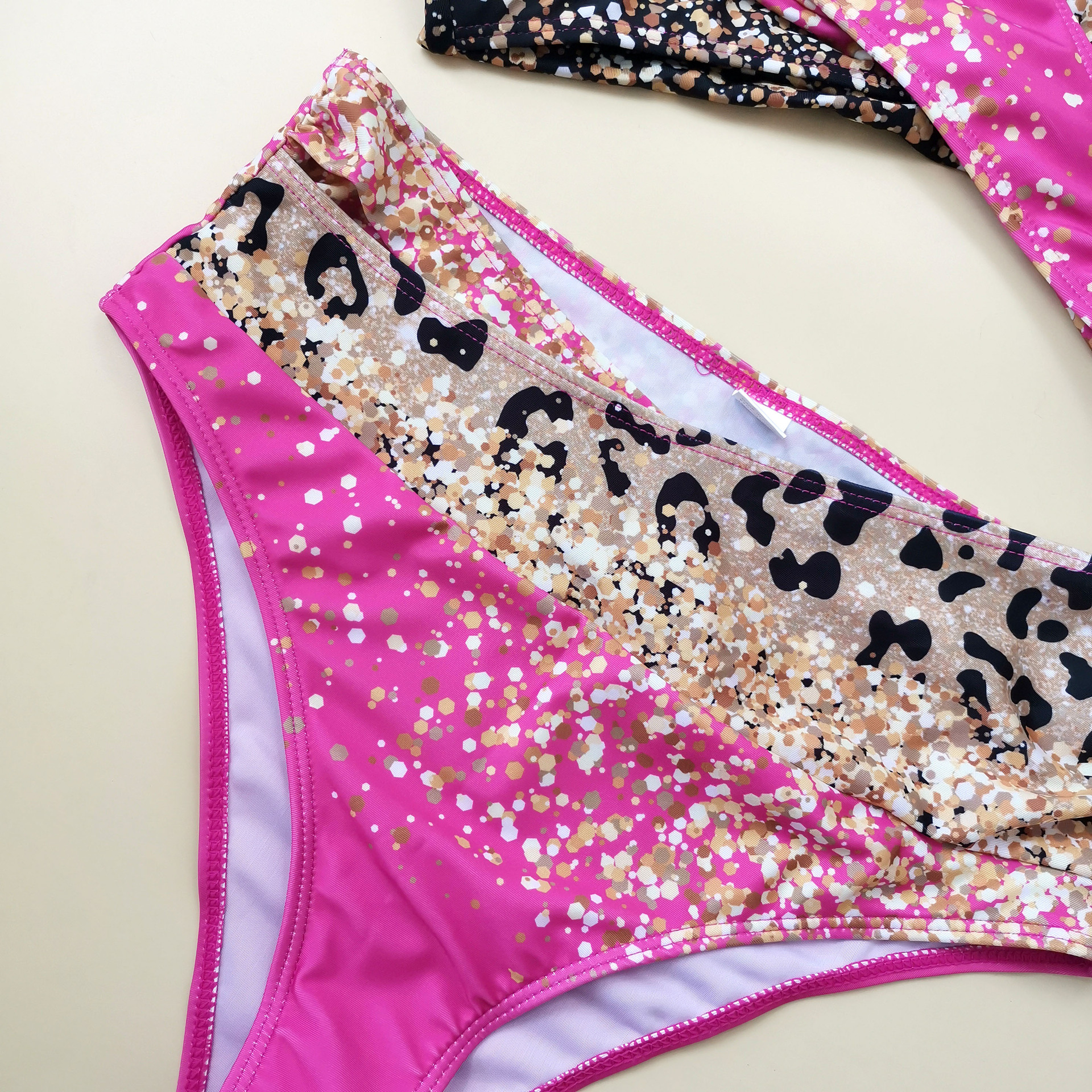 Traje de baño popular para mujer, bikini con degradado de lentejuelas y estampado de leopardo cruzado