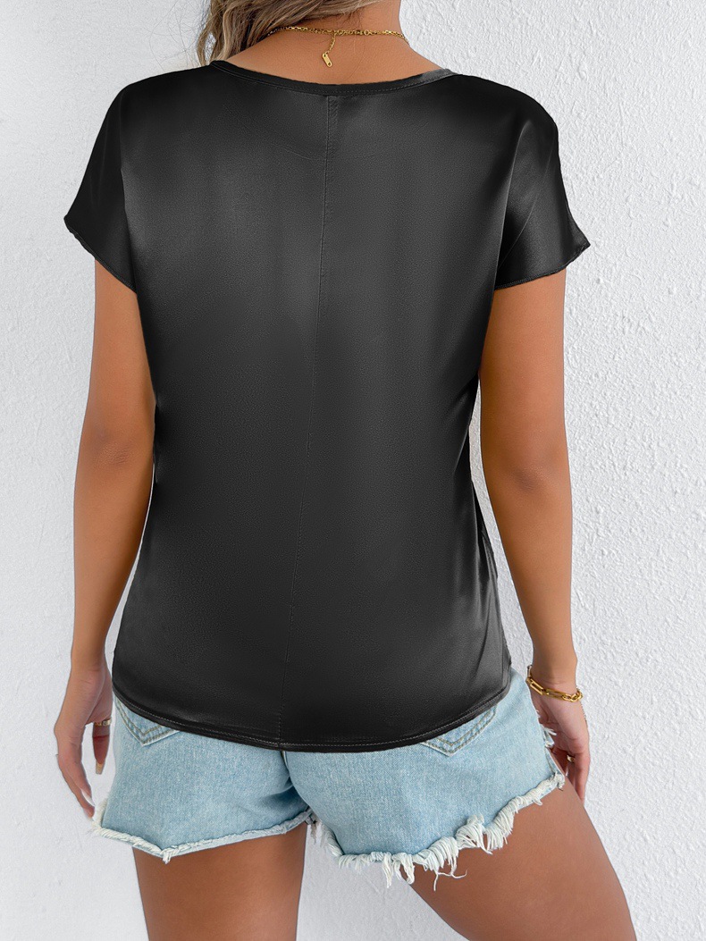 Real Shot Women Clothing Summer Satin T shirt Artificial Silk Satin Top Women Outer