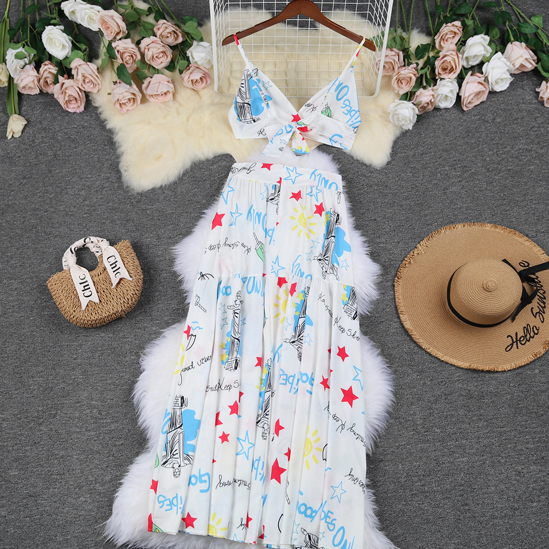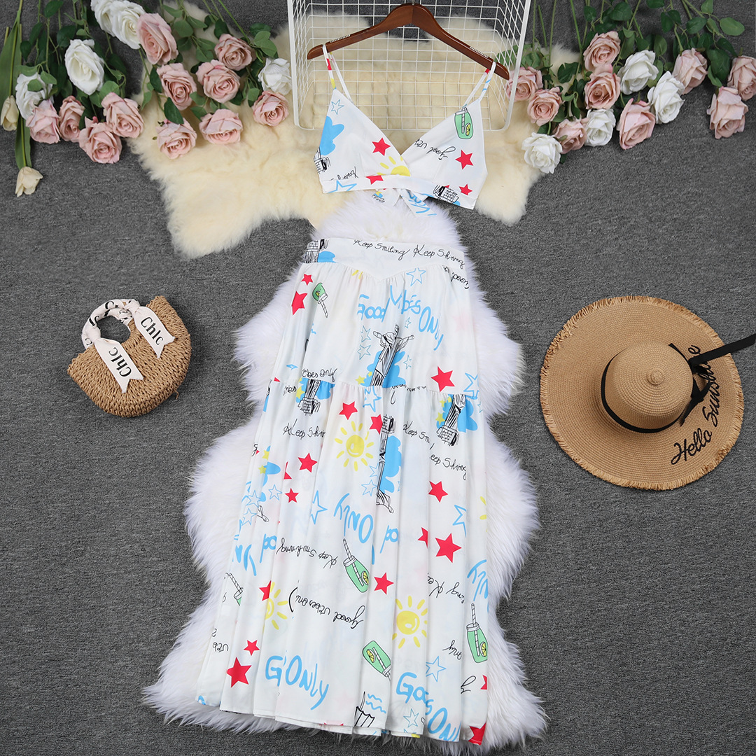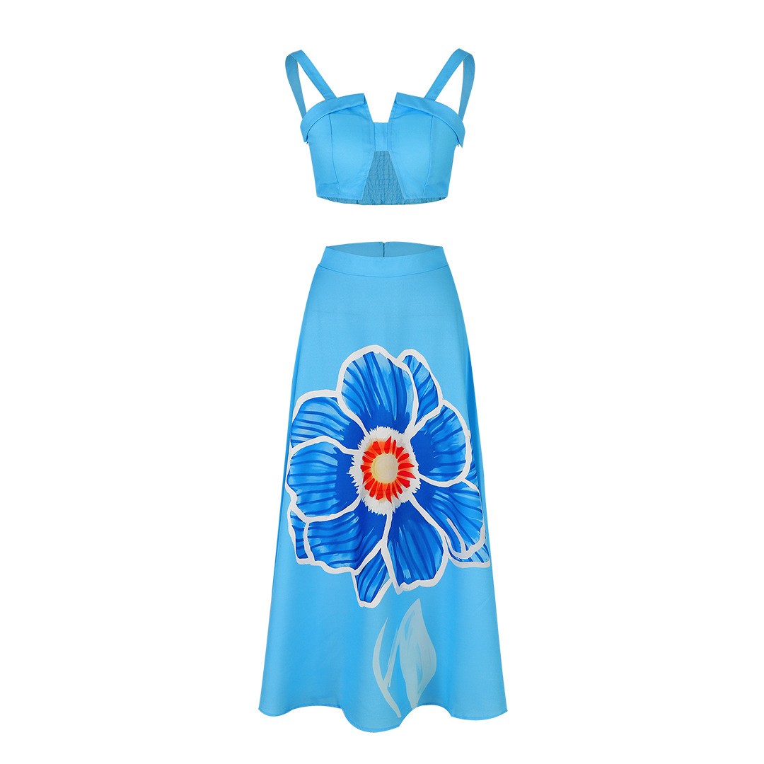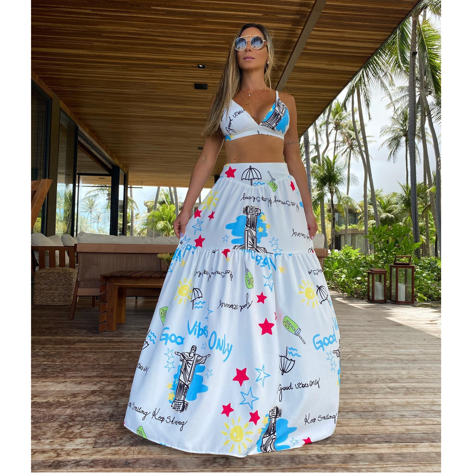 Conjunto de falda de playa con estampado grande retro sexy de dos piezas