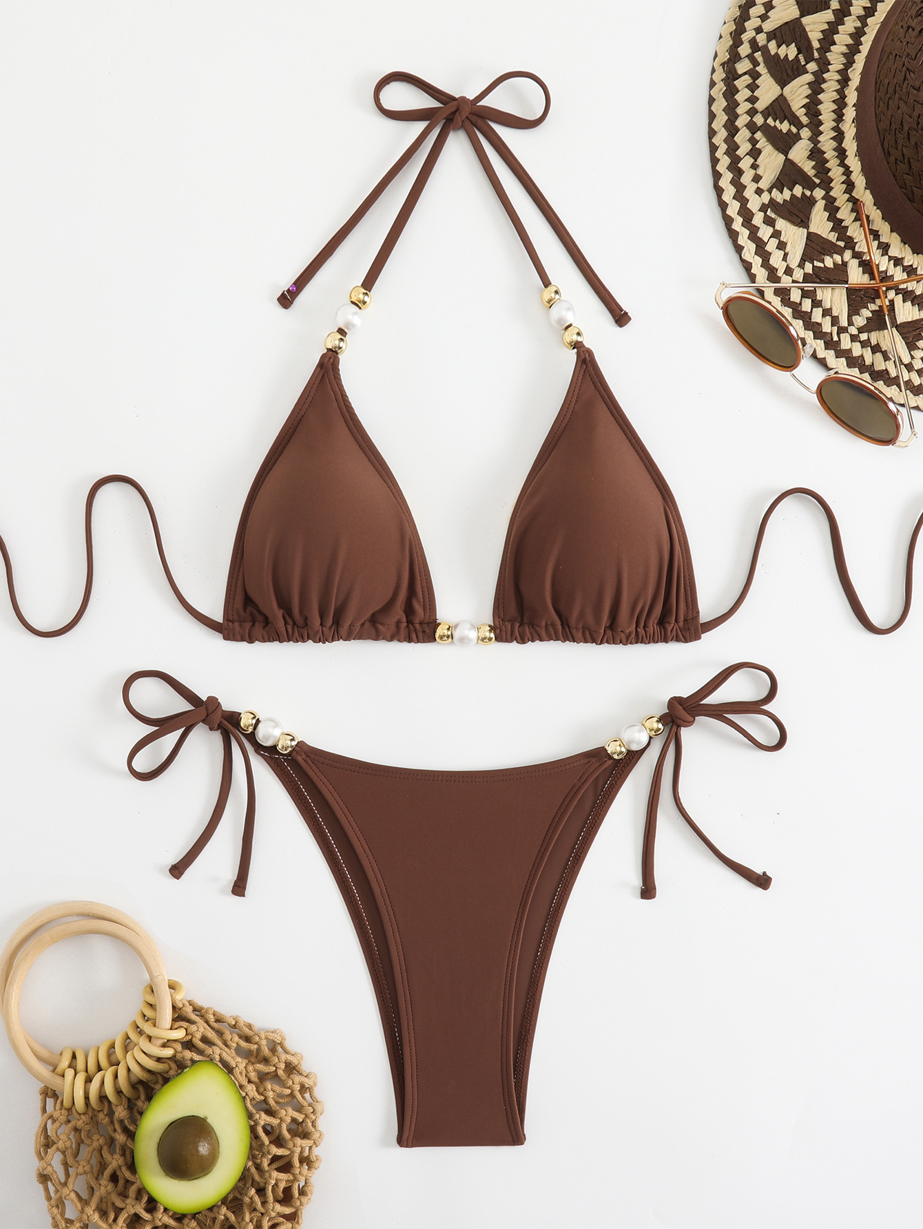 Round Beads Strap Split Swimsuit Sexy Bikini