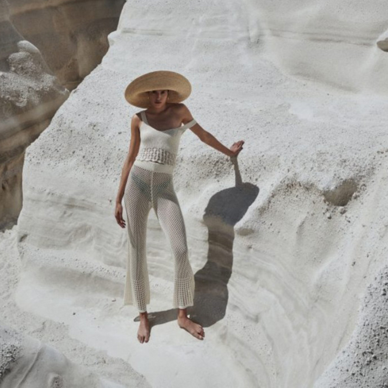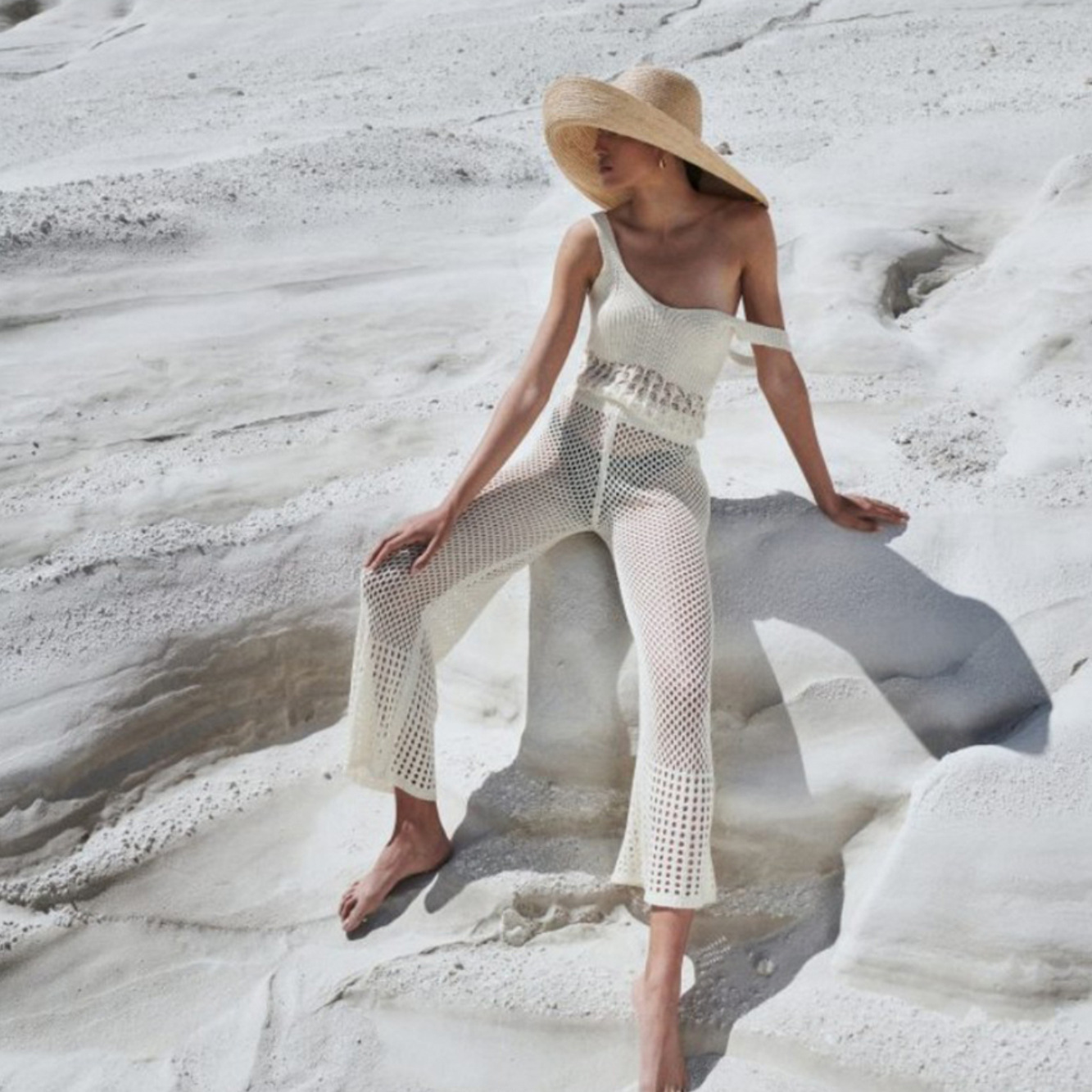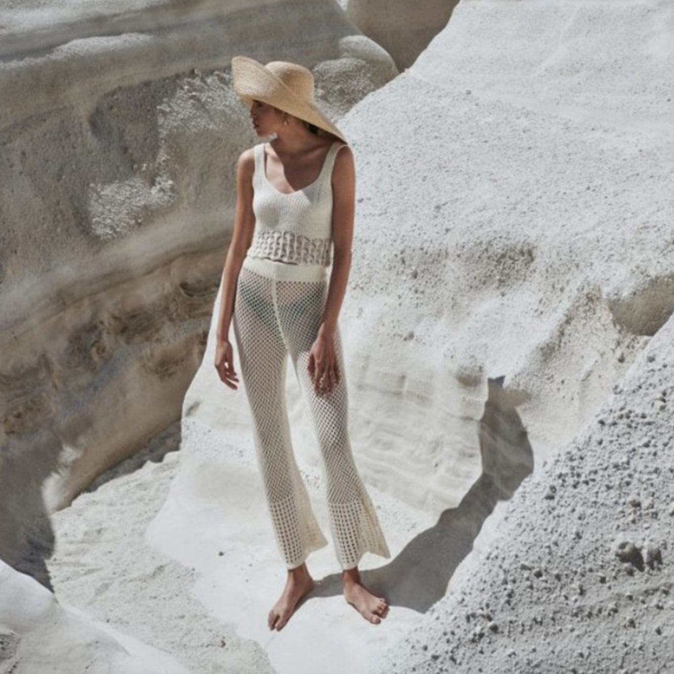 Sexy Hollow Out Cutout out See through Loose Sleeveless Beach Shirt Casual Vacation Trousers Sun Proof Set