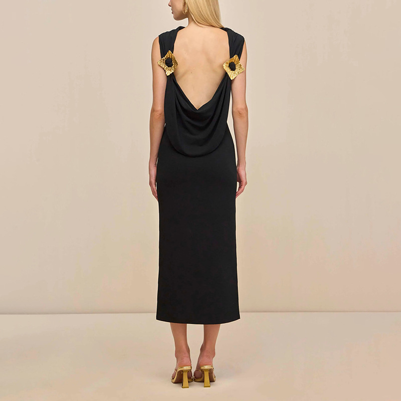 Sexy Lightly Mature Sexy Backless Dress Autumn French Waist Dress Women