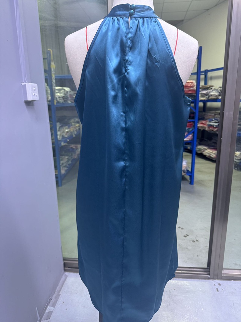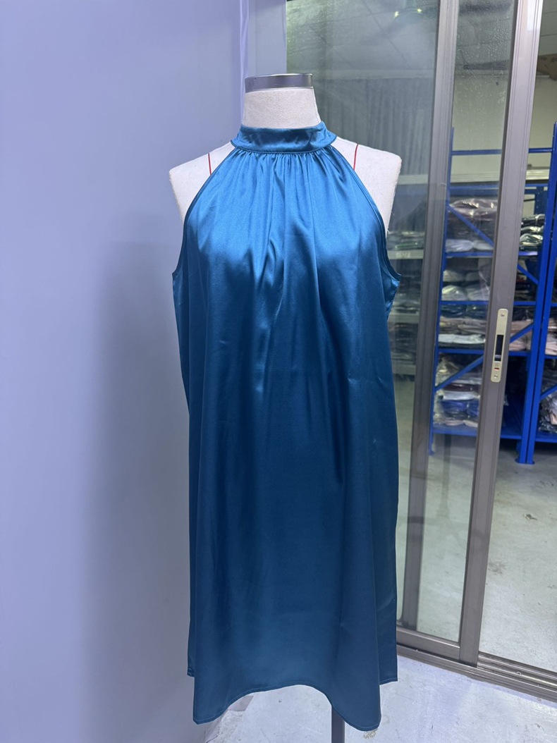 Sleeveless Dress Satin Halter Mid Length Dress Women Clothing