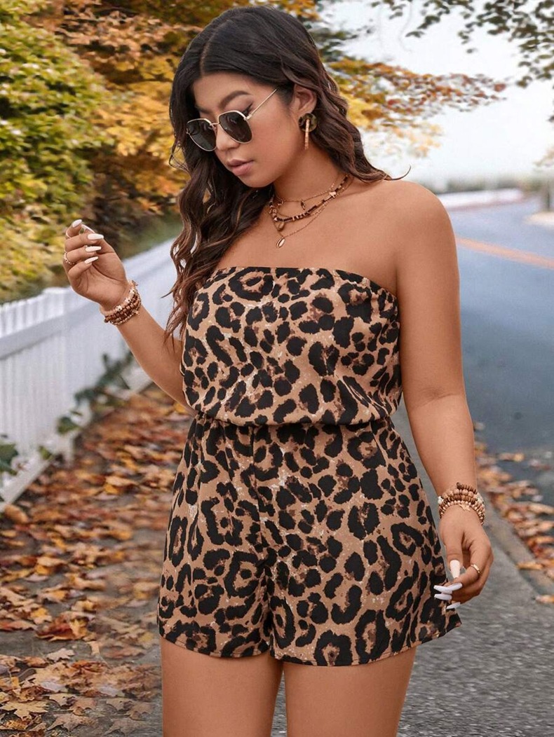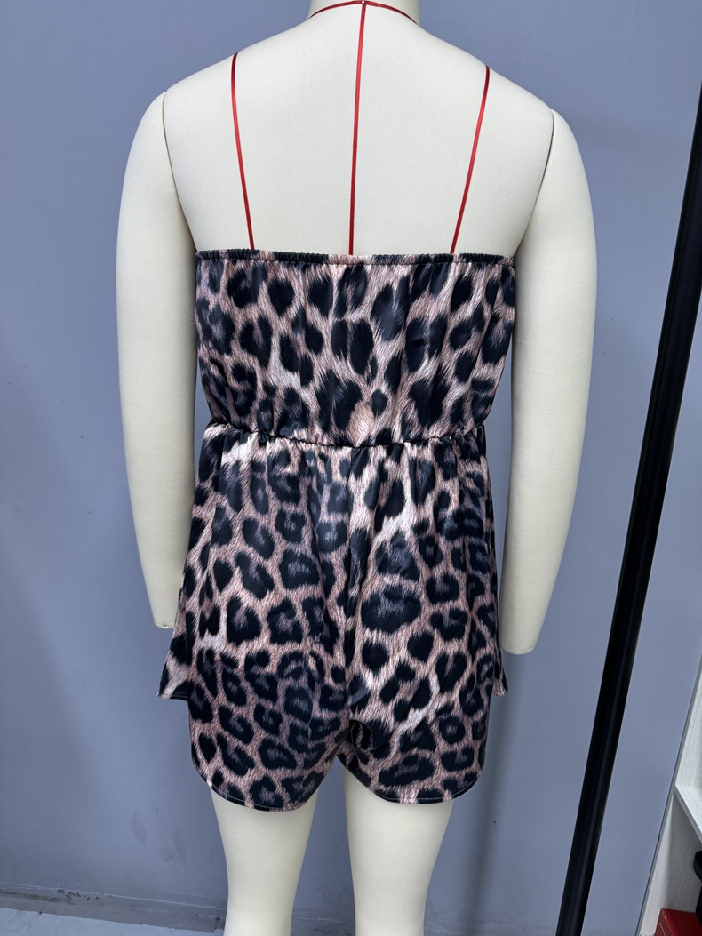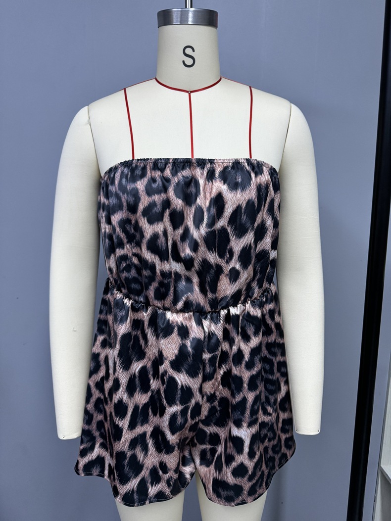 Sling Leopard Print plus Size off the Shoulder Jumpsuit Women Spring Summer Sexy Holiday Beach Jumpsuit