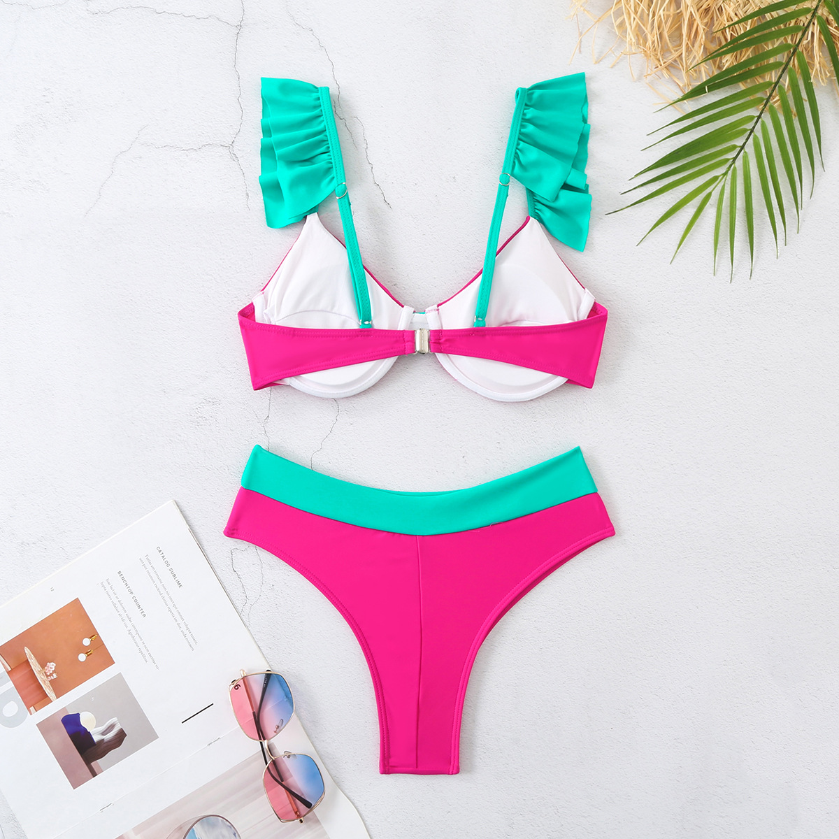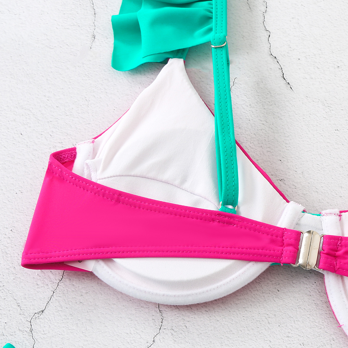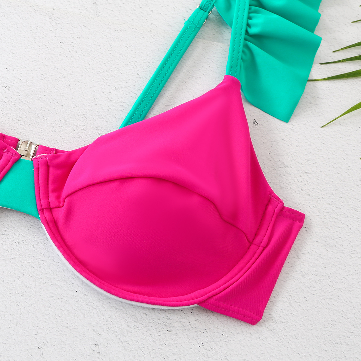 Traje de baño dividido de color sólido a juego con colores para mujer Bikini de cintura baja Bikini