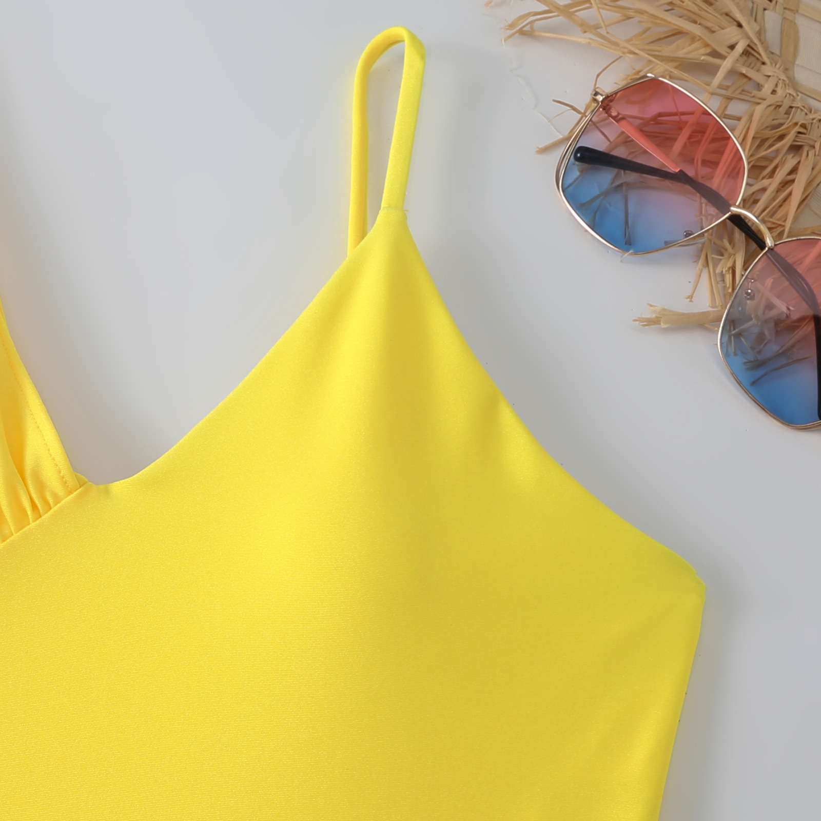 Traje de baño sexy de color sólido para mujer, ajustado, conservador, para vacaciones de primavera.