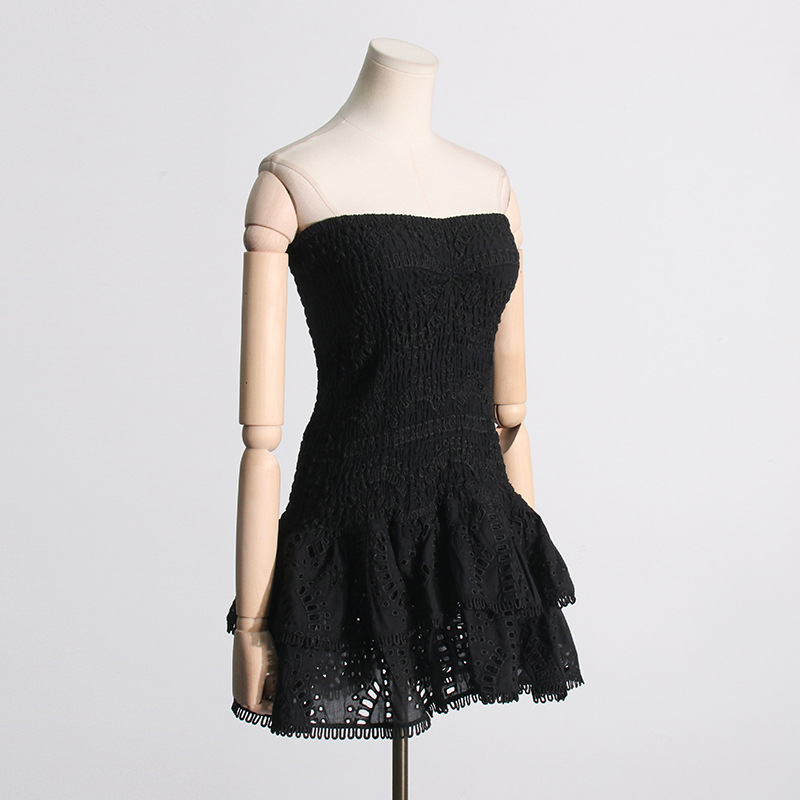 Vestido corto con volantes bordados y cintura elástica para mujer