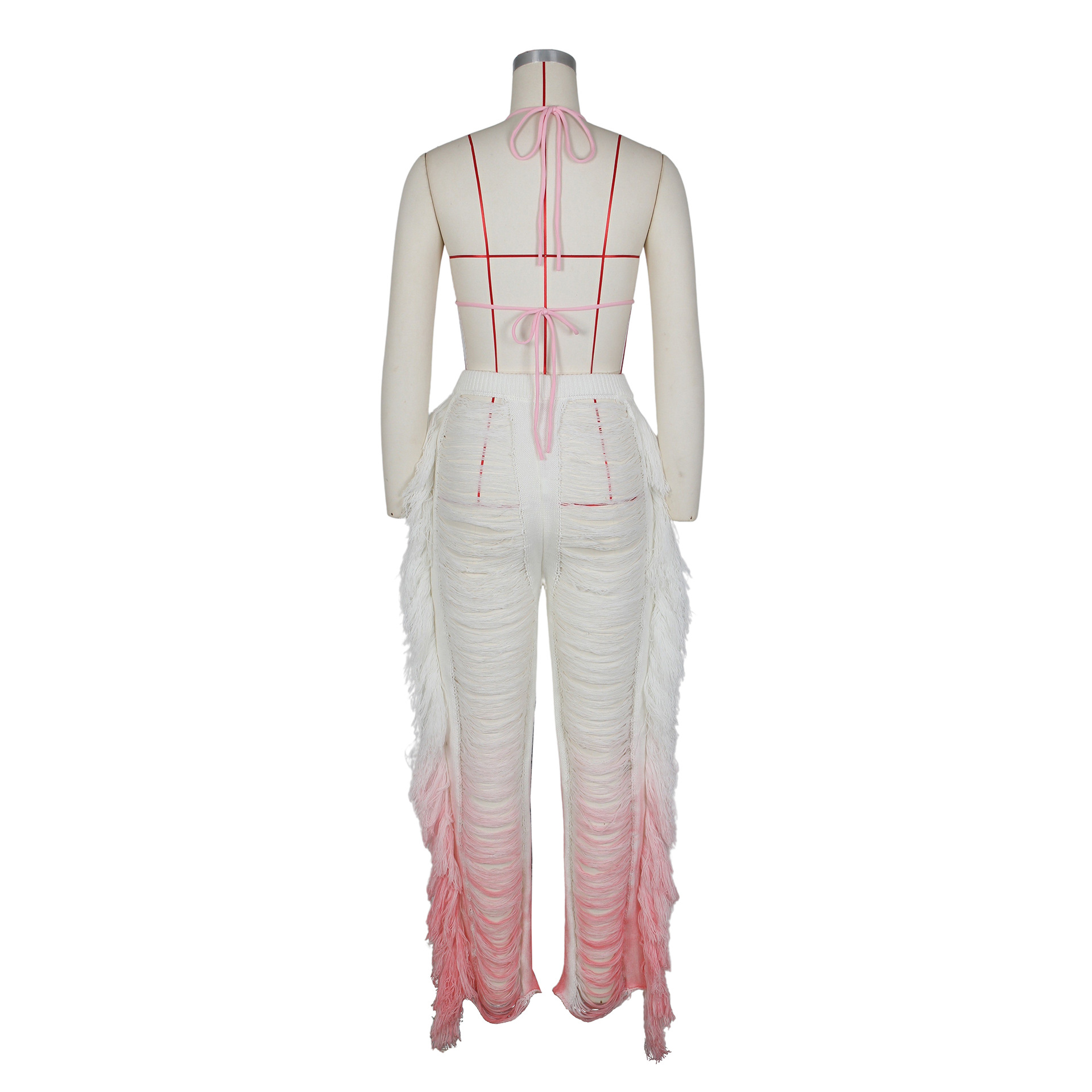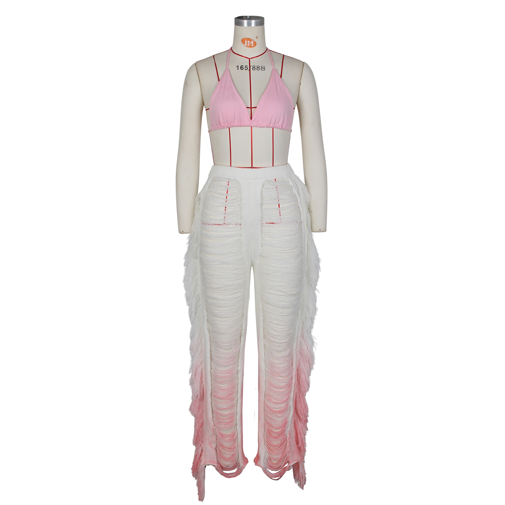 Ropa de verano para mujer, pantalones de punto con borlas y degradado sexy para playa, traje informal
