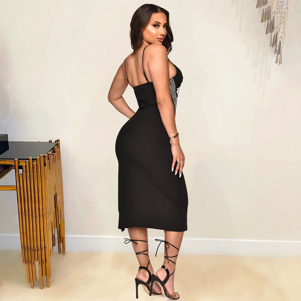 Vestido sexy de verano con tirantes y abertura con diamantes de imitación para mujer