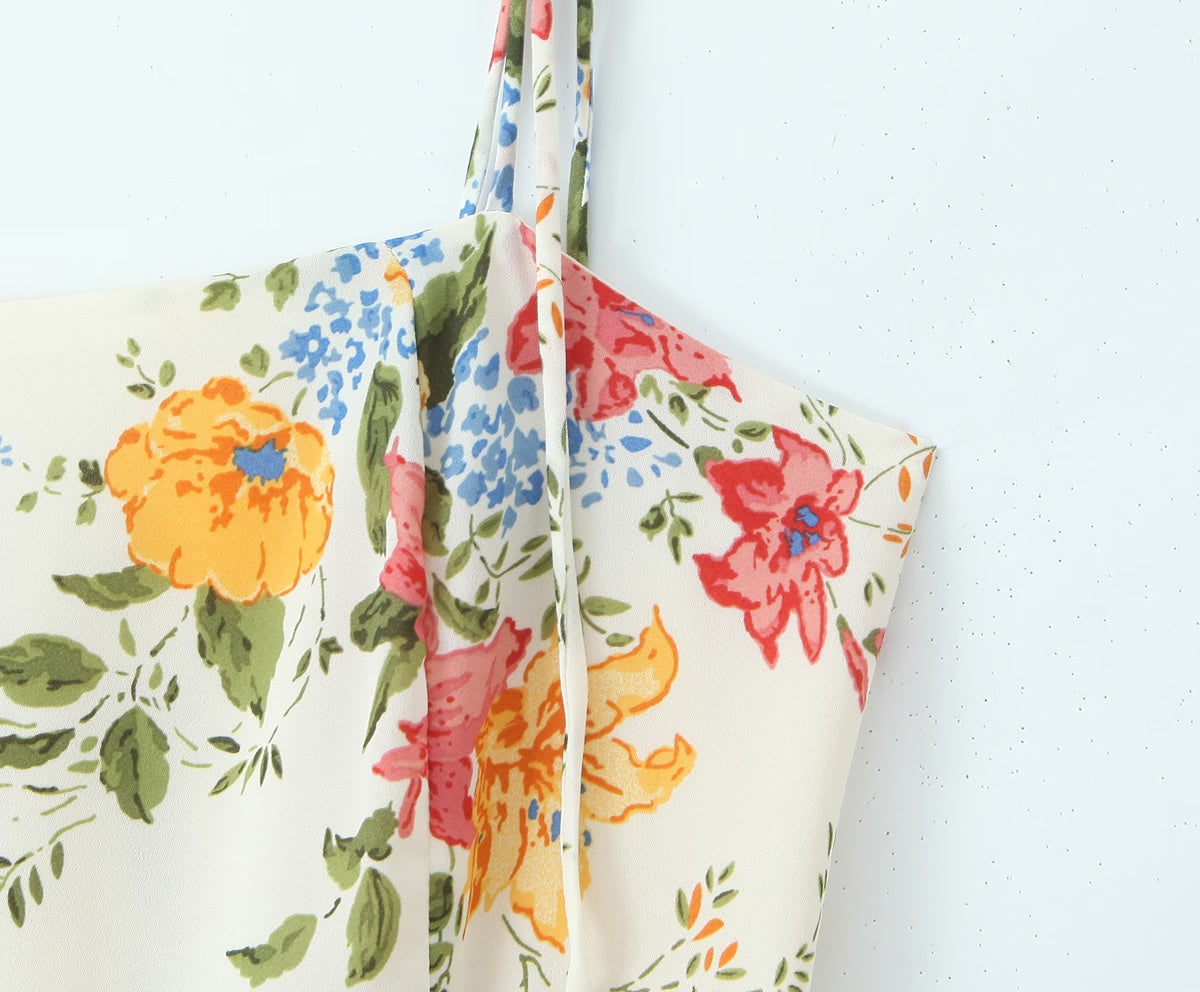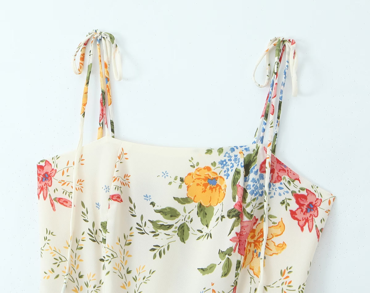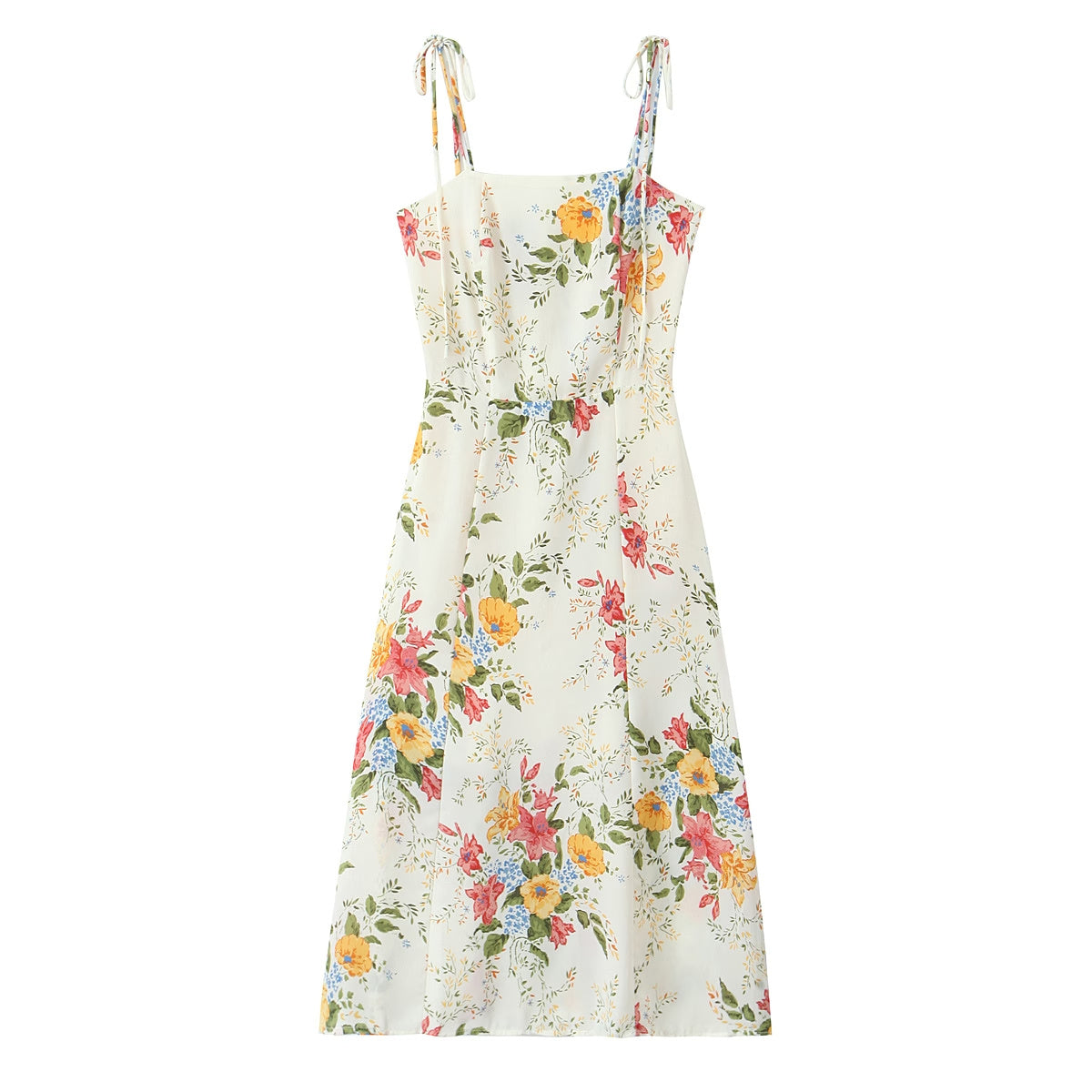 Vestido de verano para mujer con estampado floral pequeño, ajustado y tirantes grandes