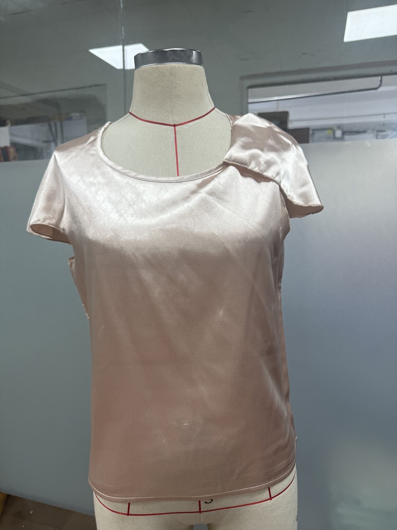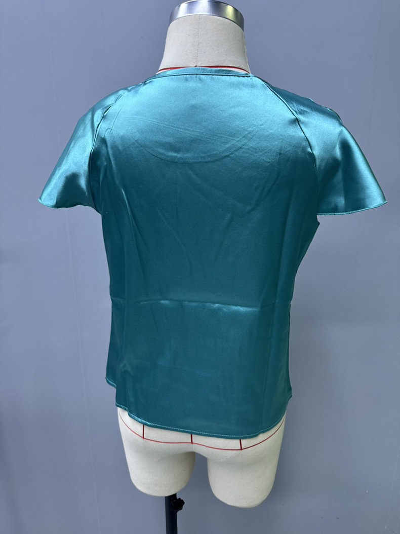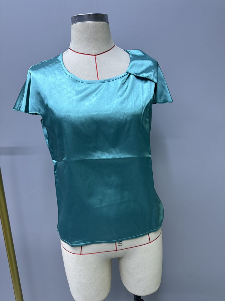 Supply Summer Satin Short Sleeve Satin Twisted Solid Color Loose Fitting Top Women